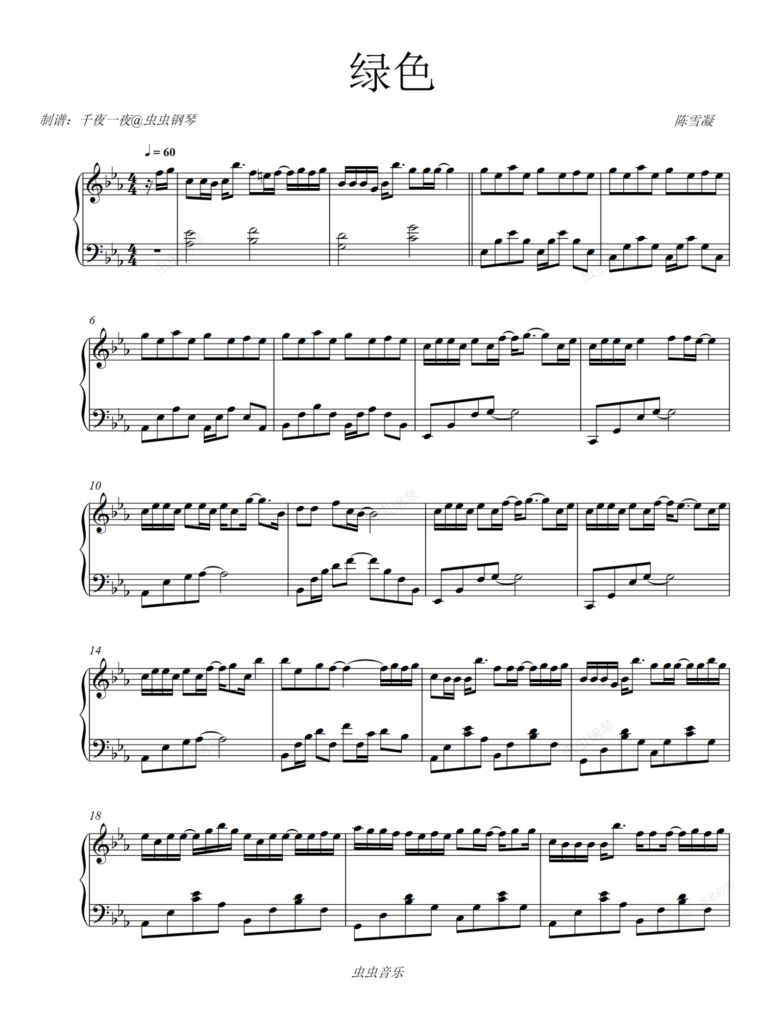 钢琴谱:《绿色》原唱:陈雪凝,真正喜欢你的人可以为了你做任何事情