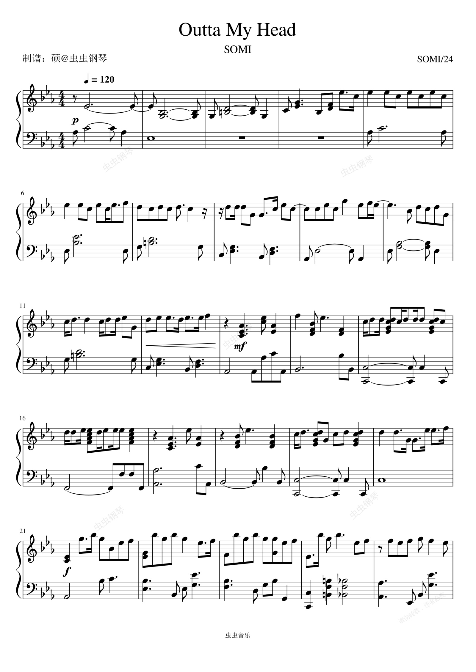 钢琴谱:Outta My Head - 全昭弥 (전소미)