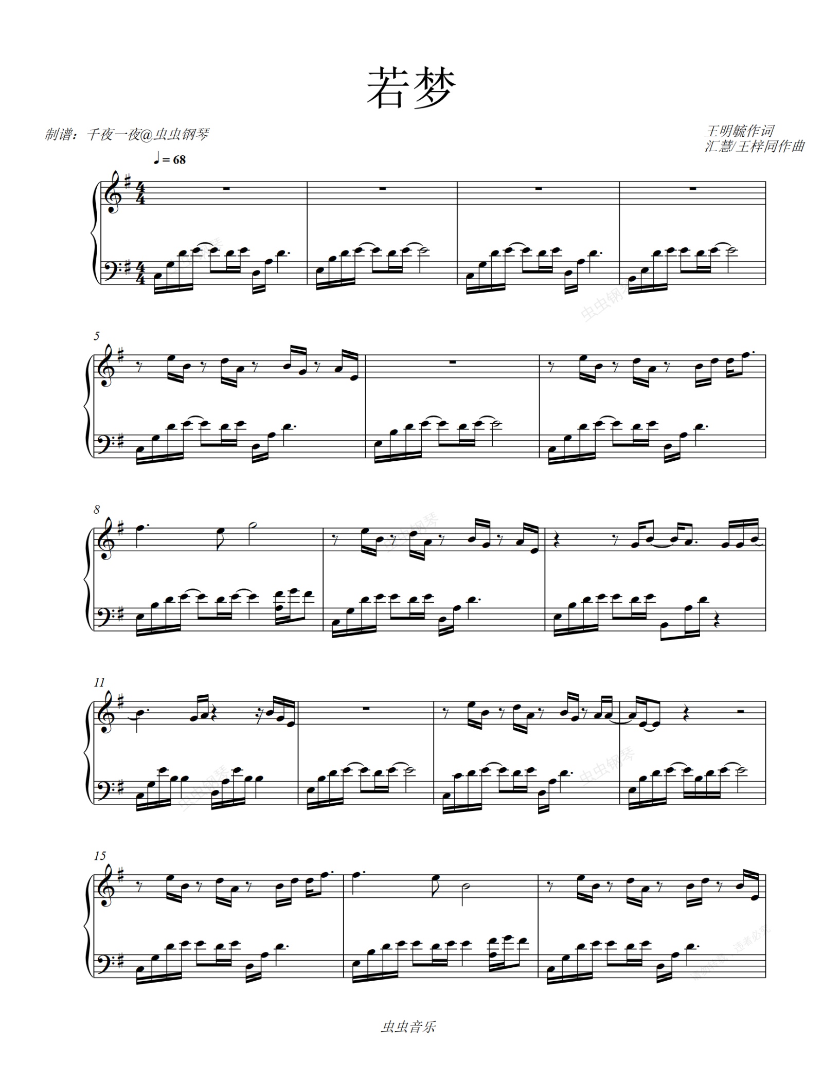 钢琴谱:周深献唱《若梦(电视剧《与君歌》主题曲)》