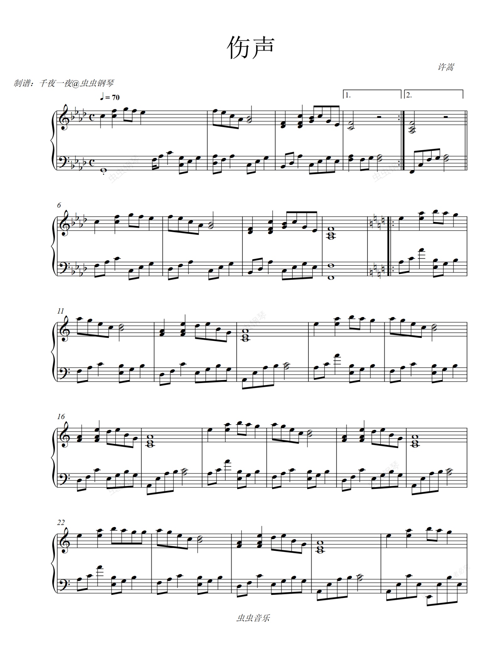 钢琴谱:许嵩《伤声》这些天,我失恋了,擦去脸上的泪水,却带不走心中痛楚的感觉。