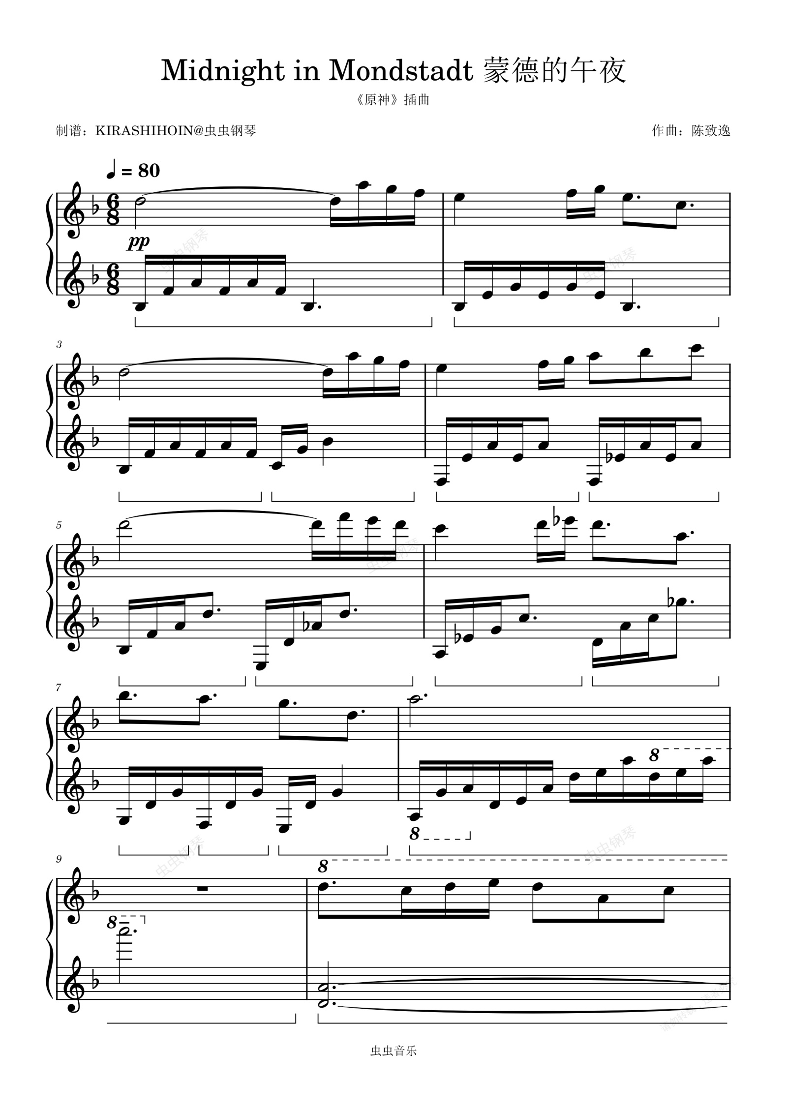 钢琴谱:蒙德的午夜 Midnight in Mondstadt(《原神》插曲)- 陈致逸
