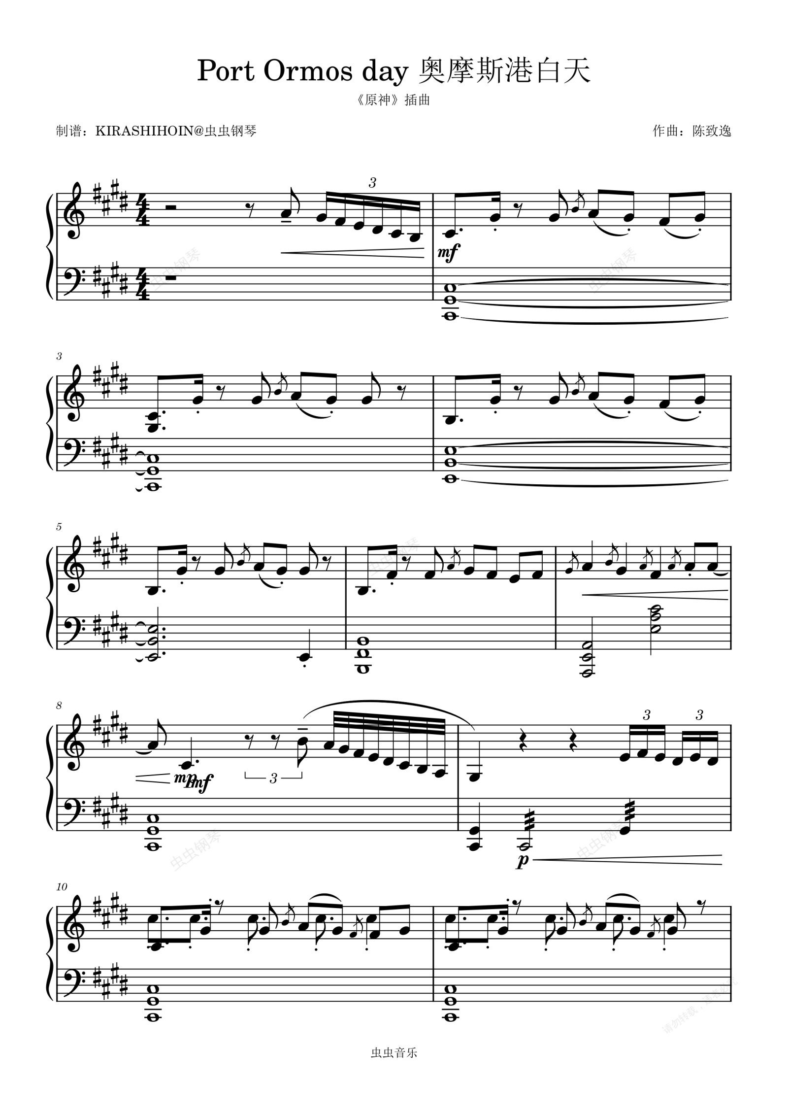 钢琴谱:奥摩斯港白天 Port Ormos day(《原神》插曲)- 陈致逸
