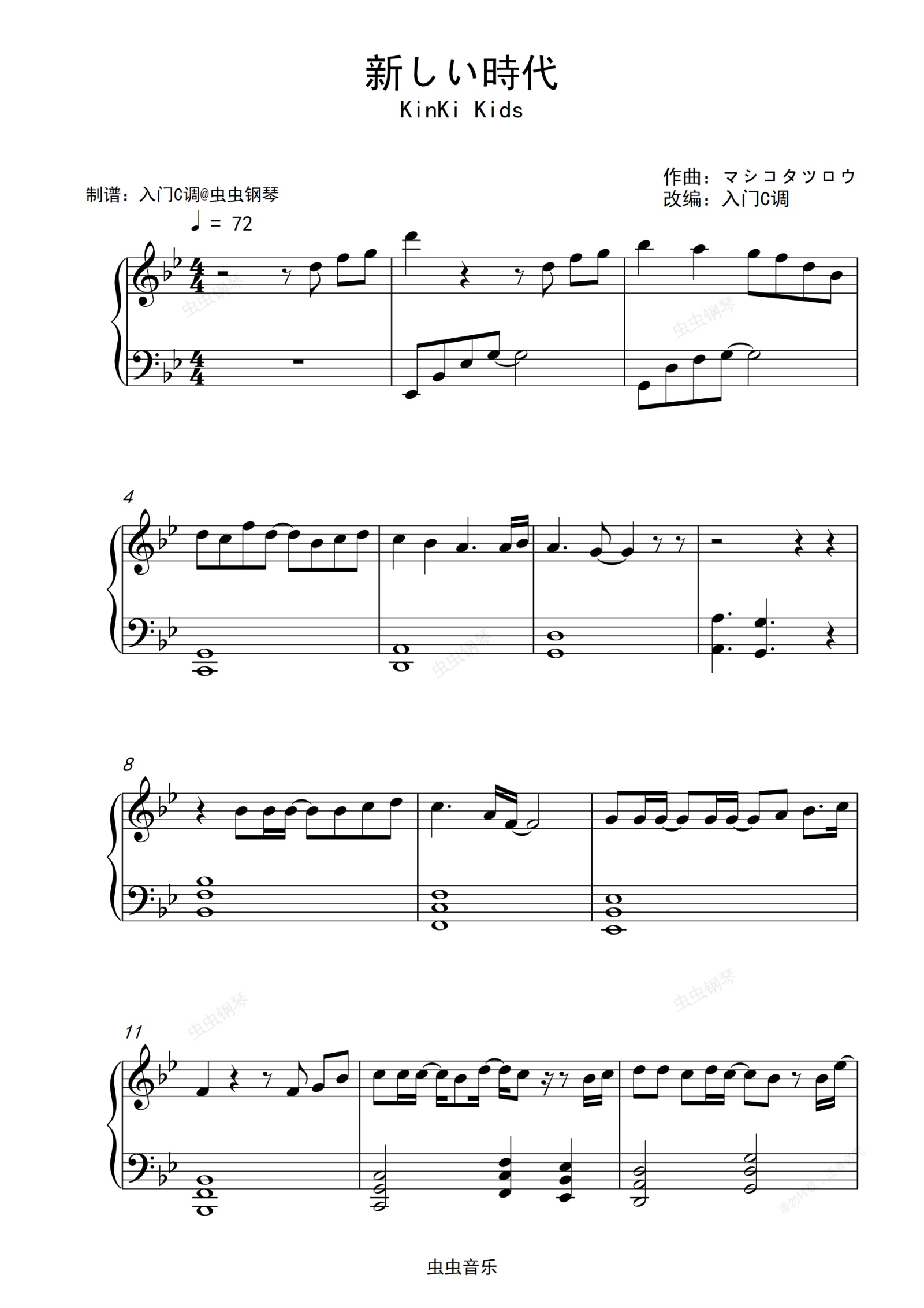 钢琴谱:KinKi Kids《新しい時代》原调抒情版