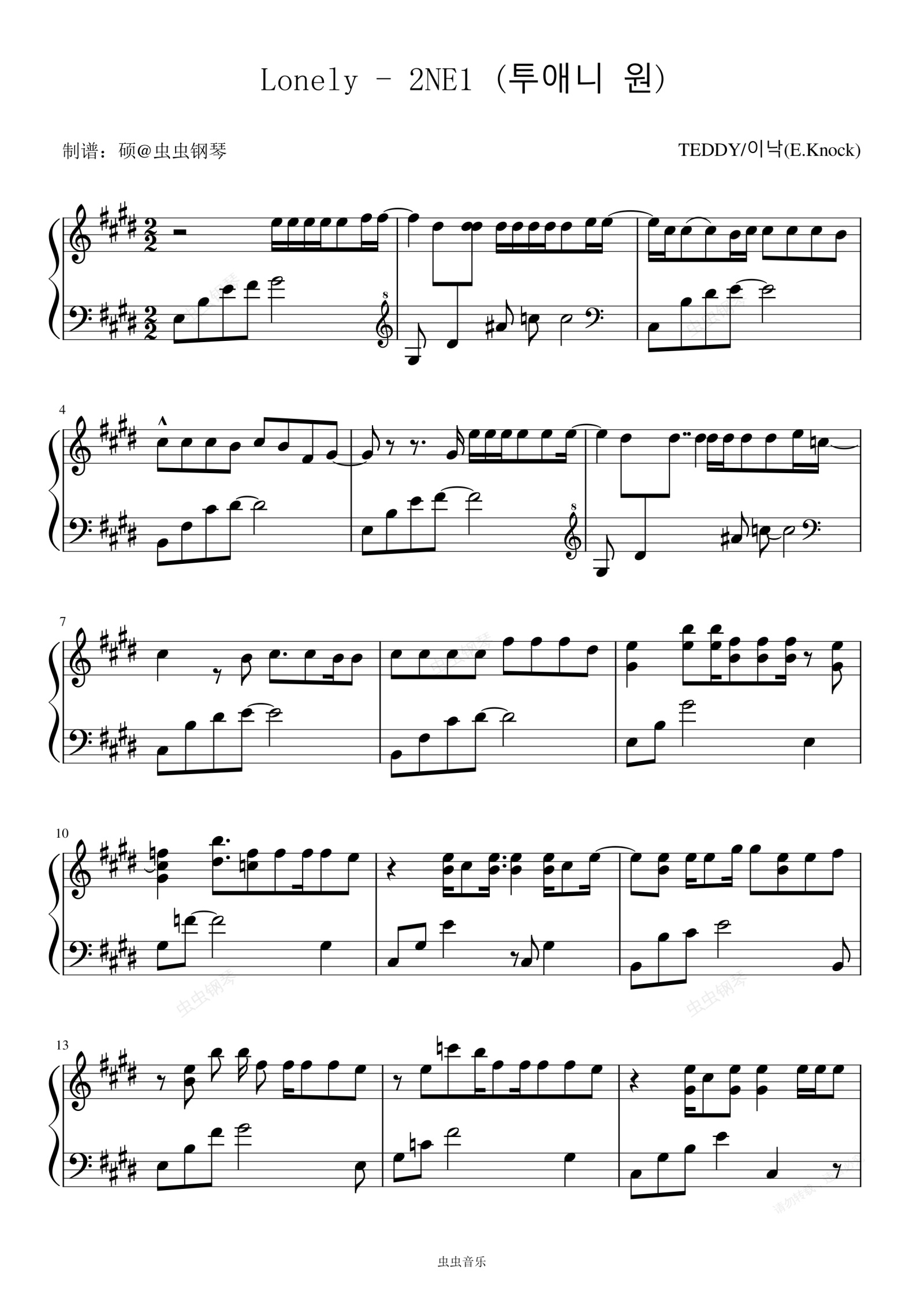 钢琴谱:Lonely - 2NE1 (투애니 원)