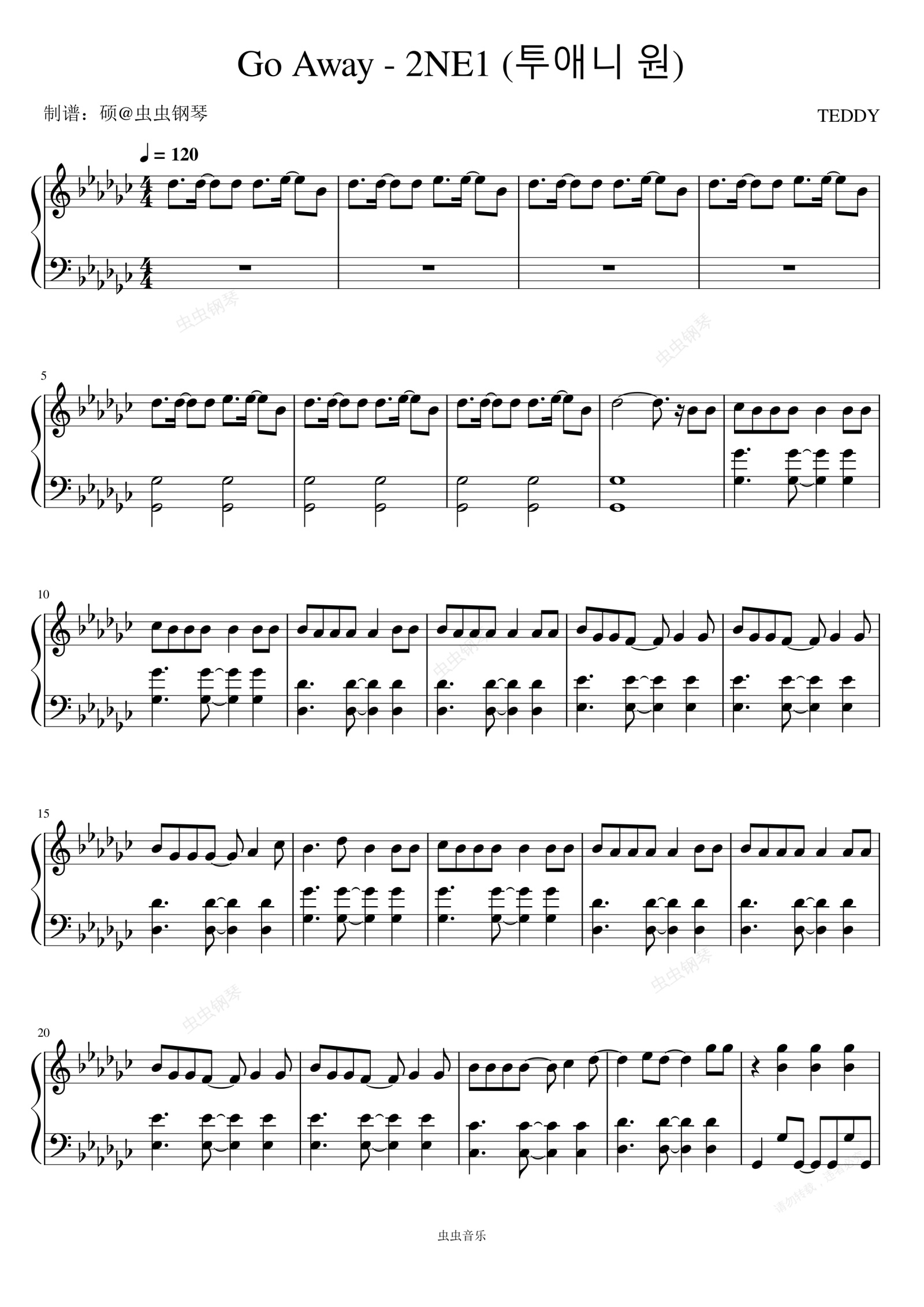 钢琴谱:Go Away - 2NE1 (투애니 원)