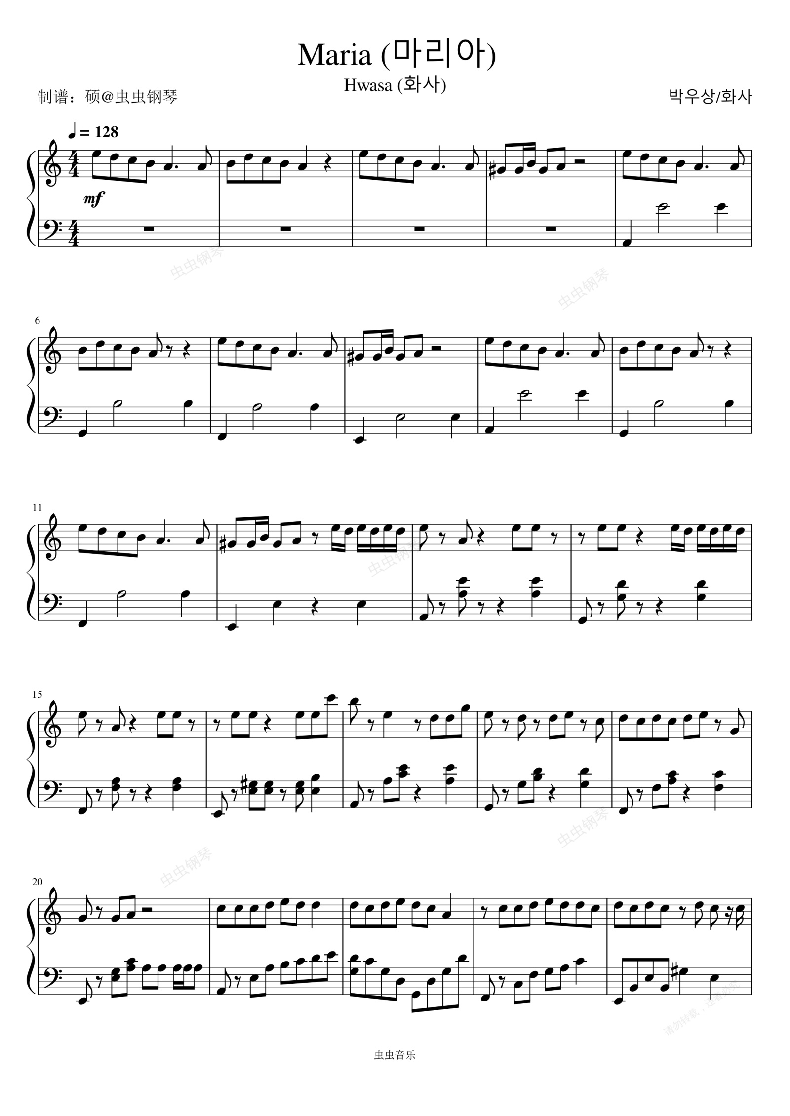 钢琴谱:마리아 (Maria) - 华莎 (화사)