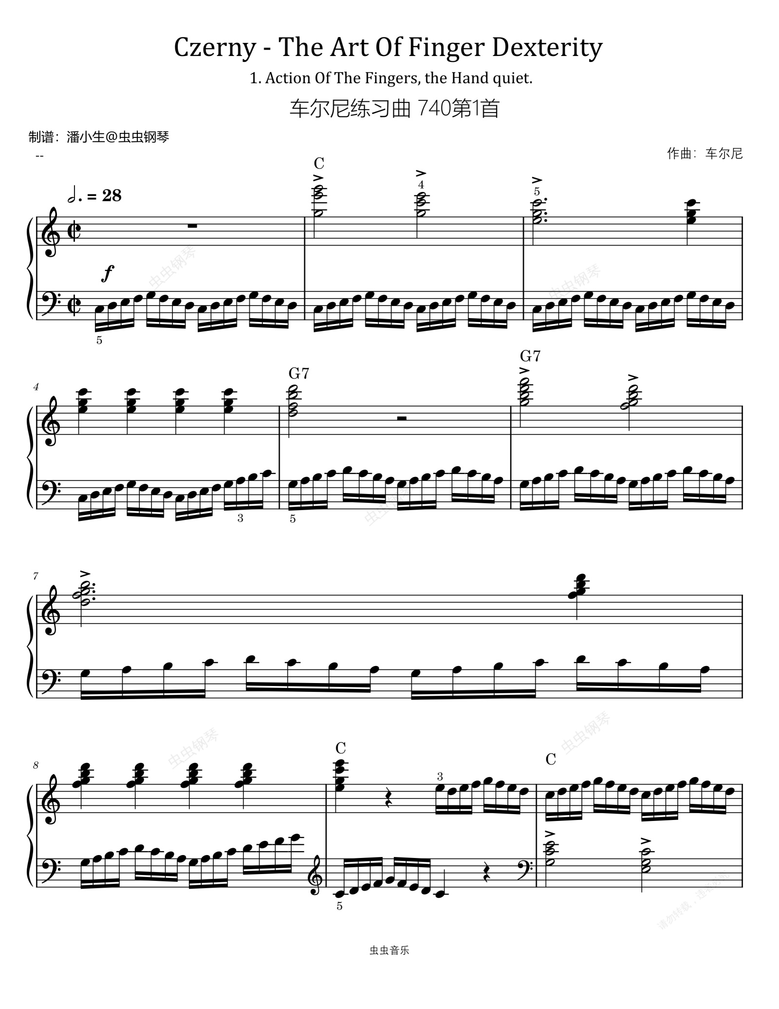 钢琴谱:车尔尼练习曲 740第1首 带指法 The Art Of Finger Dexterity Op. 740 No. 1 Czerny