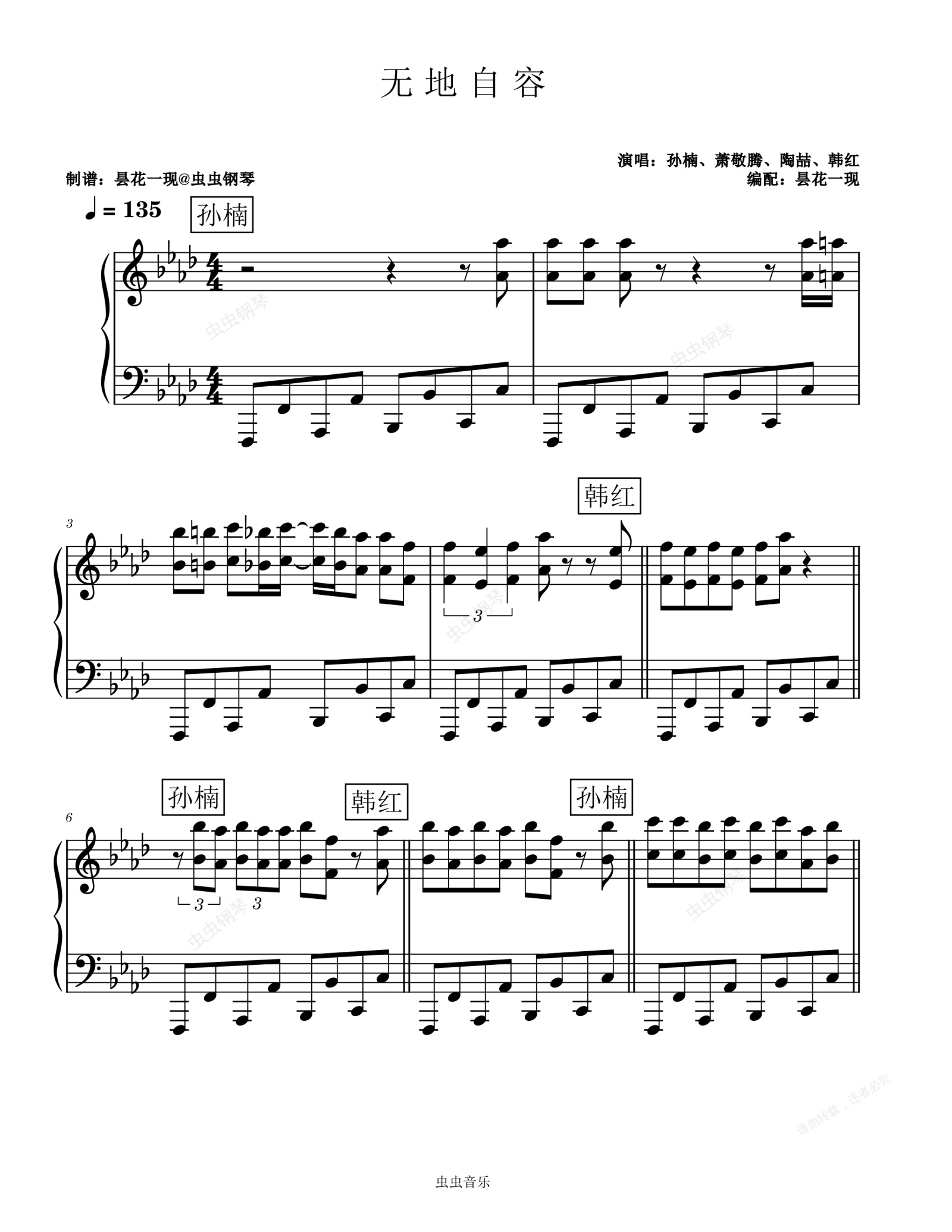钢琴谱:无地自容 陶喆、孙楠、萧敬腾、韩红