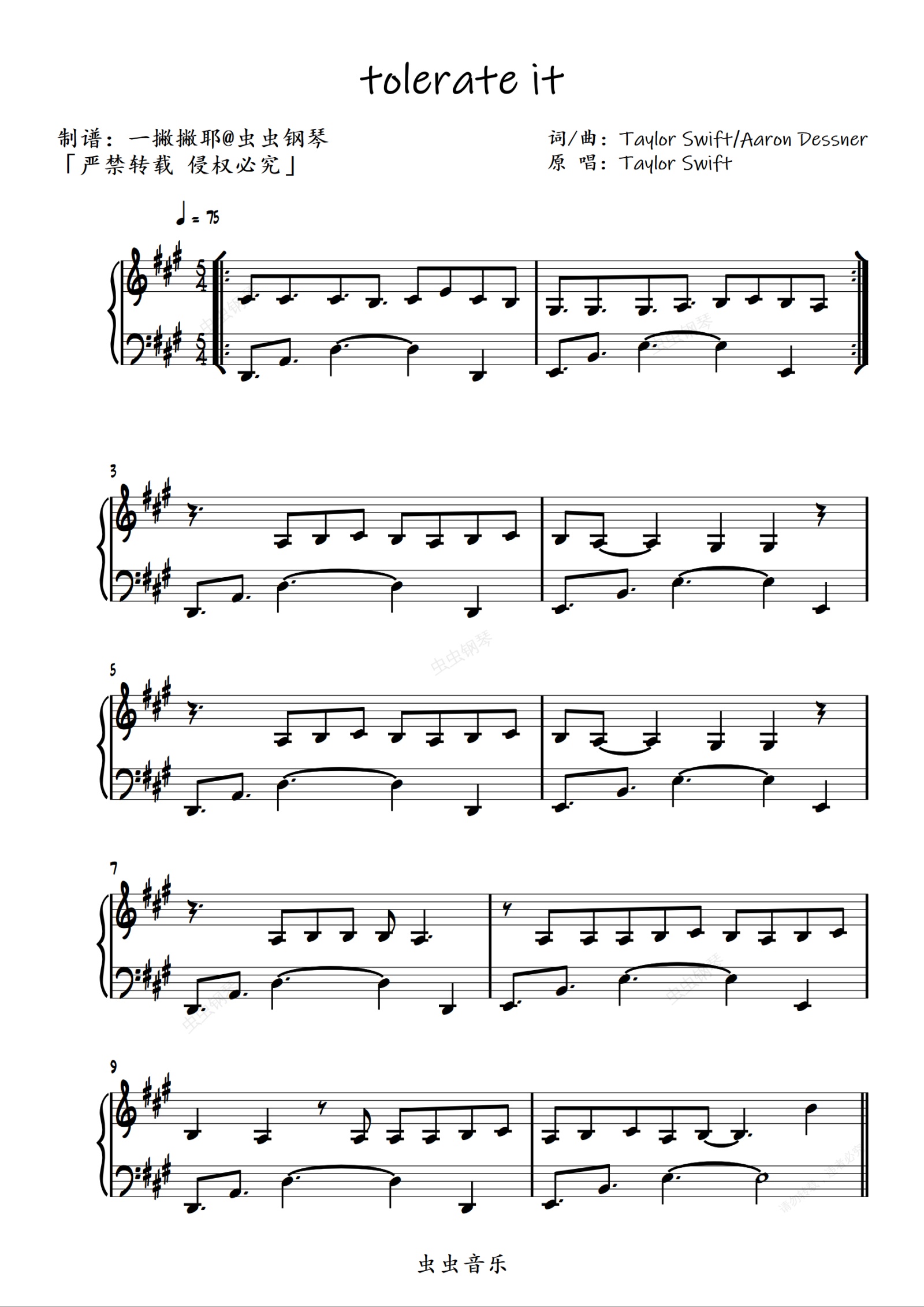 钢琴谱:简易动听《tolerate it》Taylor Swift「一撇撇耶」