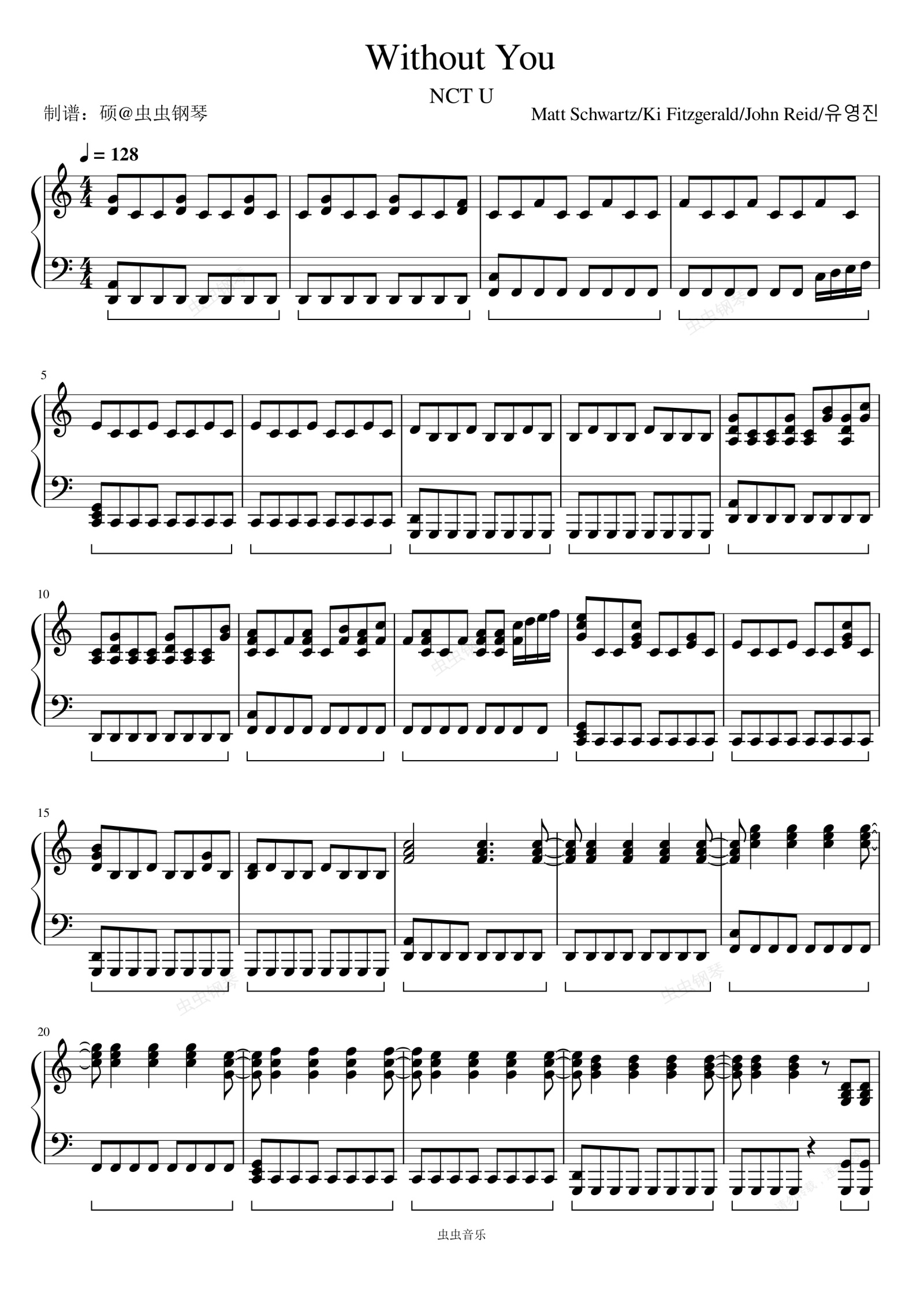 钢琴谱:WITHOUT YOU (Korean Ver.) - NCT U (엔시티 유)