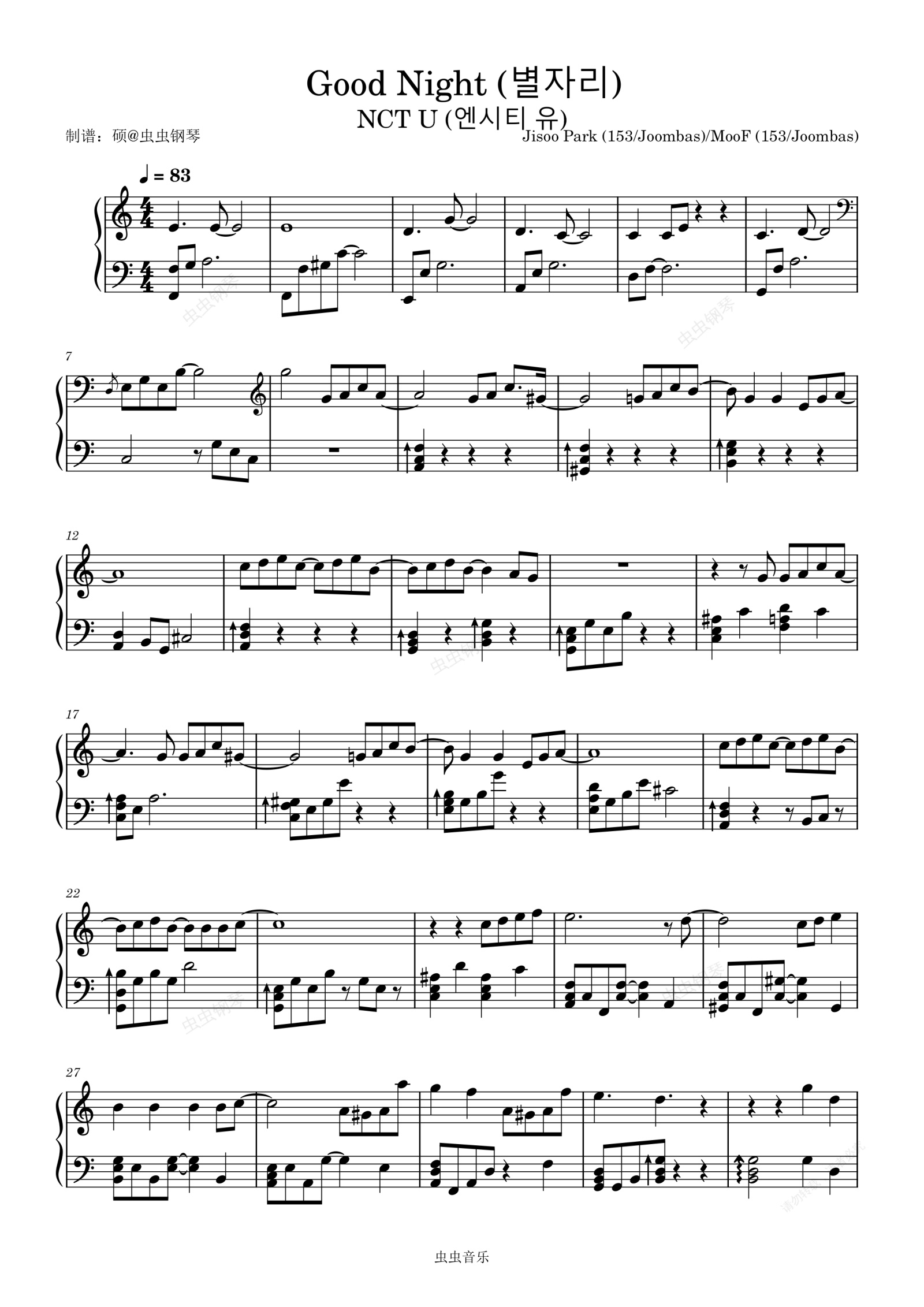 钢琴谱:星夜 (Good Night) - NCT U (엔시티 유)