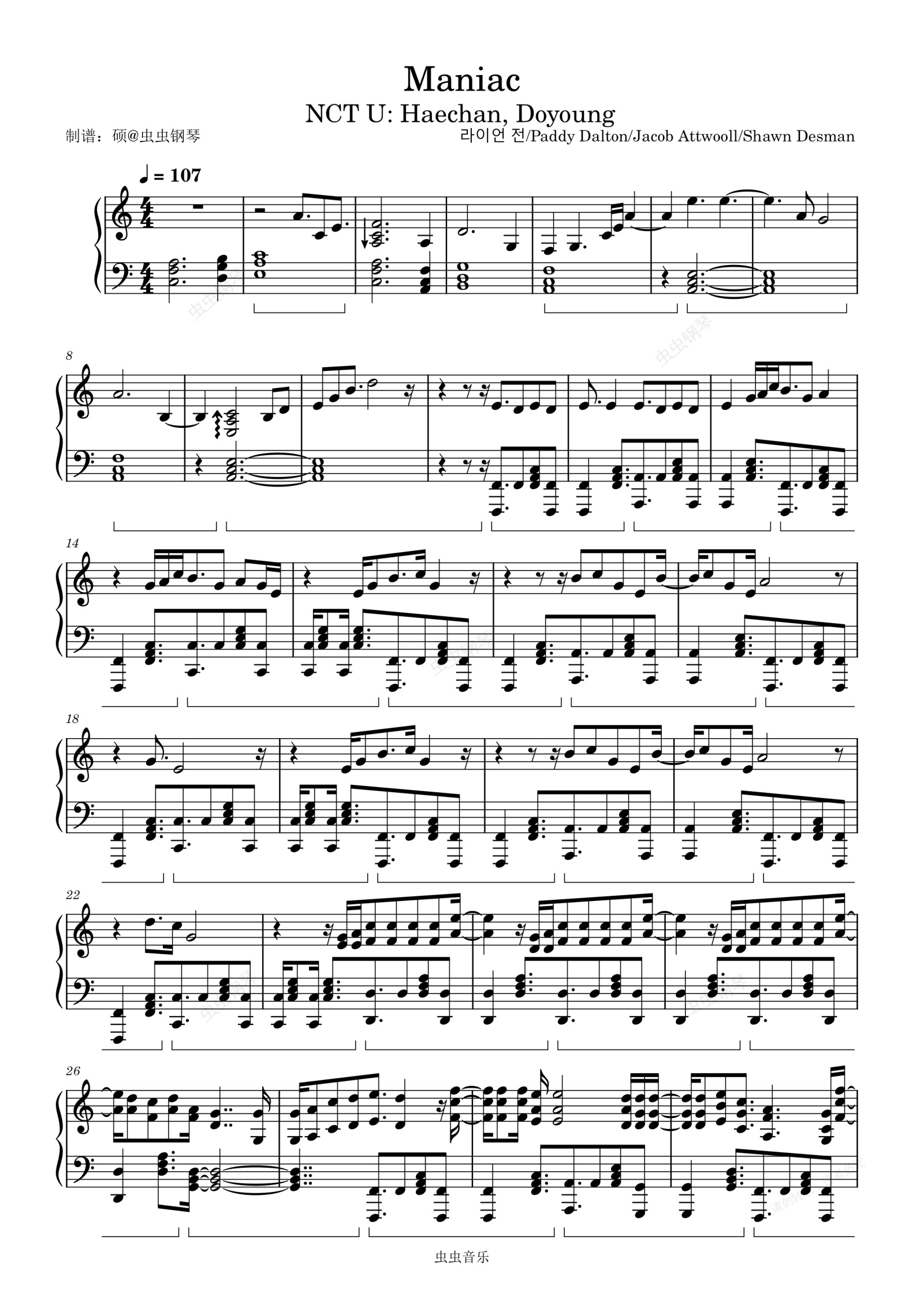钢琴谱:Maniac (Sung by 도영, 해찬) (Prod. 라이언전) - NCT U (엔시티 유)