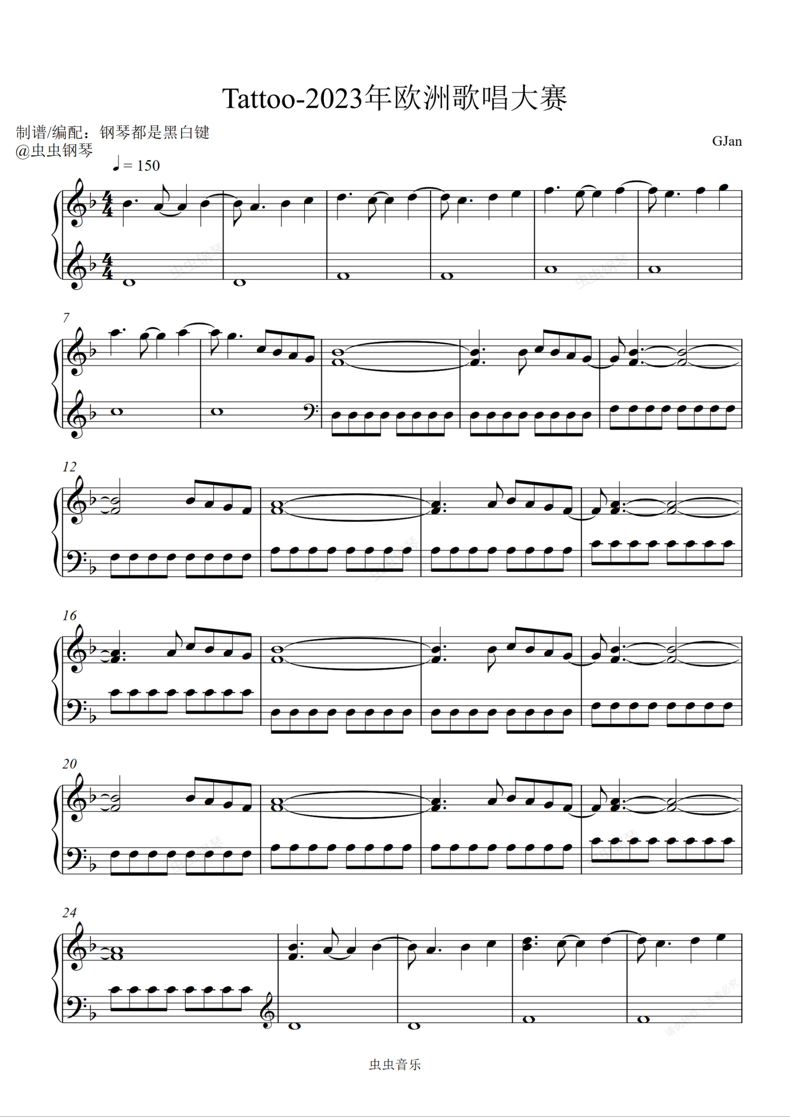 钢琴谱:Tattoo-2023年欧洲歌唱大赛 【好听易弹钢琴独奏】