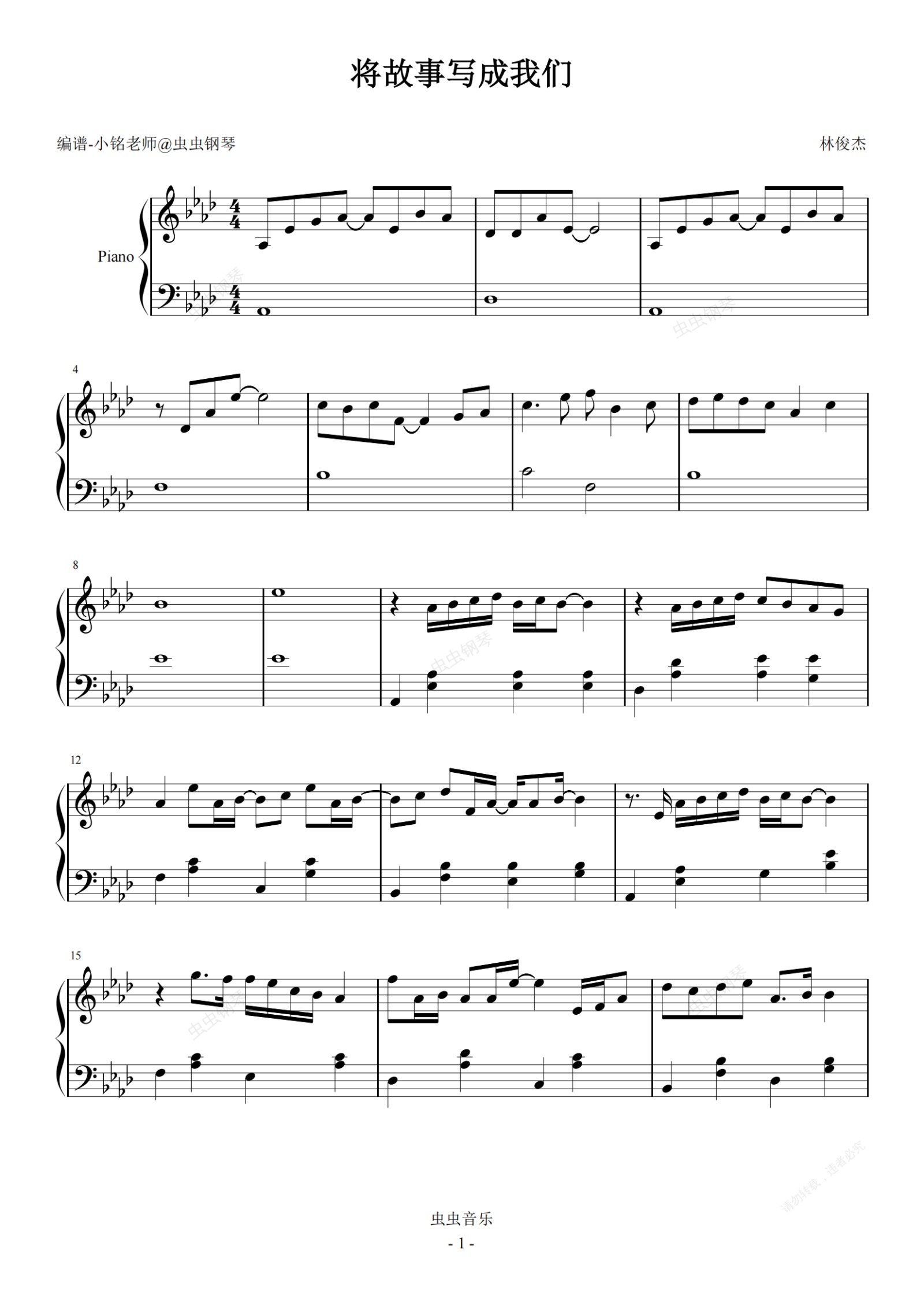 钢琴谱:将我们故事写成歌 【简易 A调】