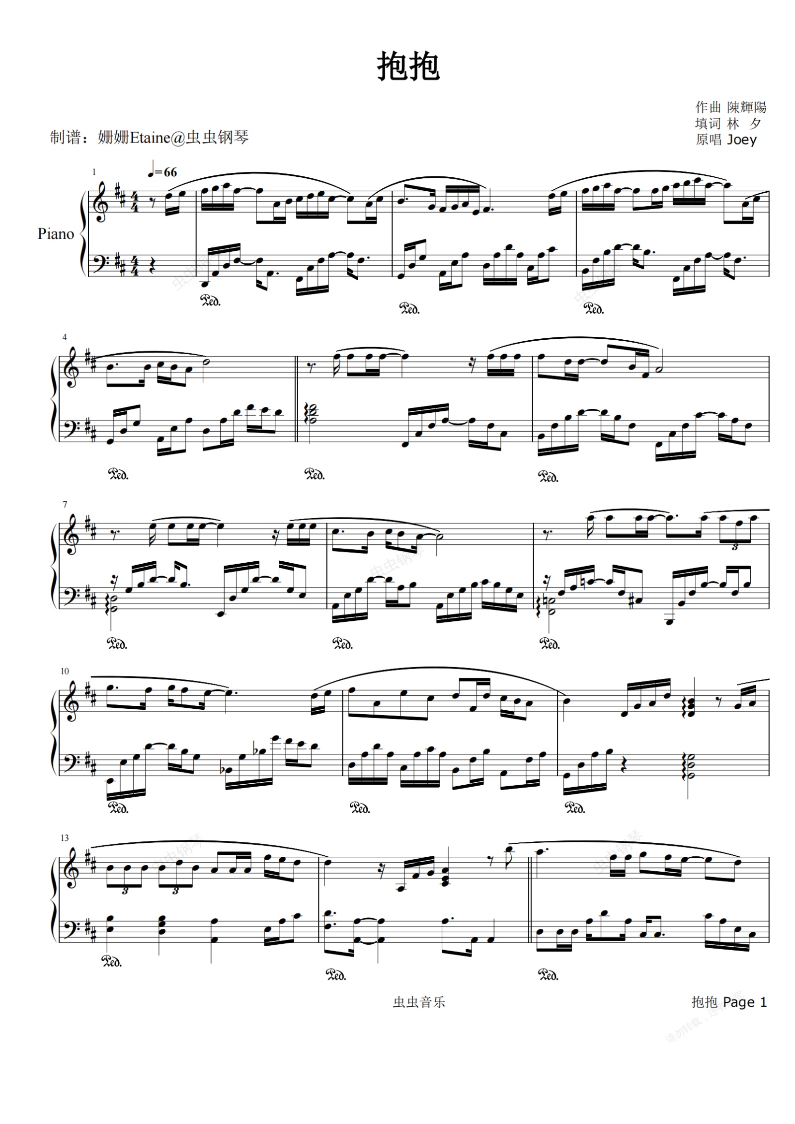 钢琴谱:《抱抱》英皇热恋版 钢琴谱
