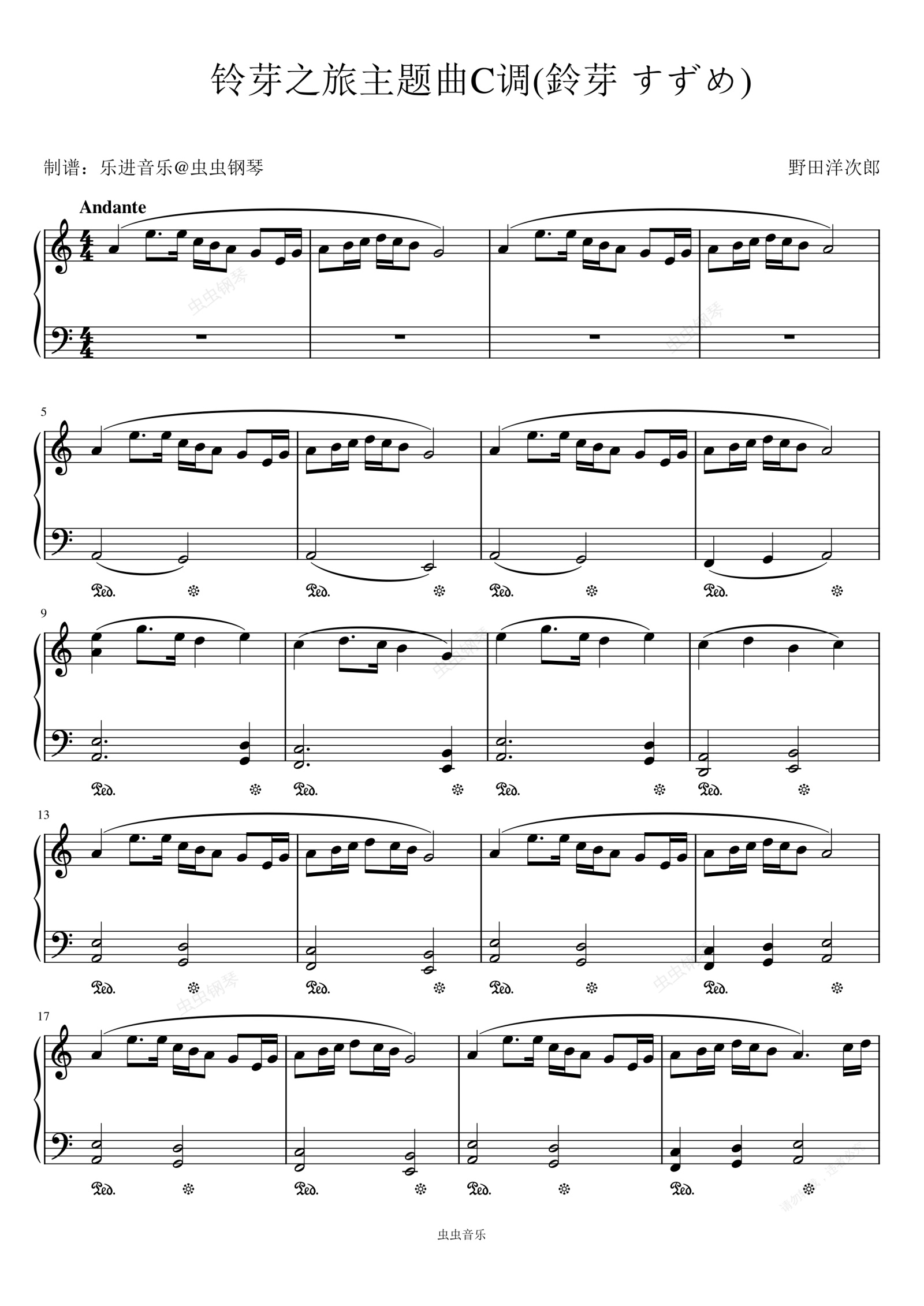钢琴谱:《铃芽之旅》主题曲,C调简易版