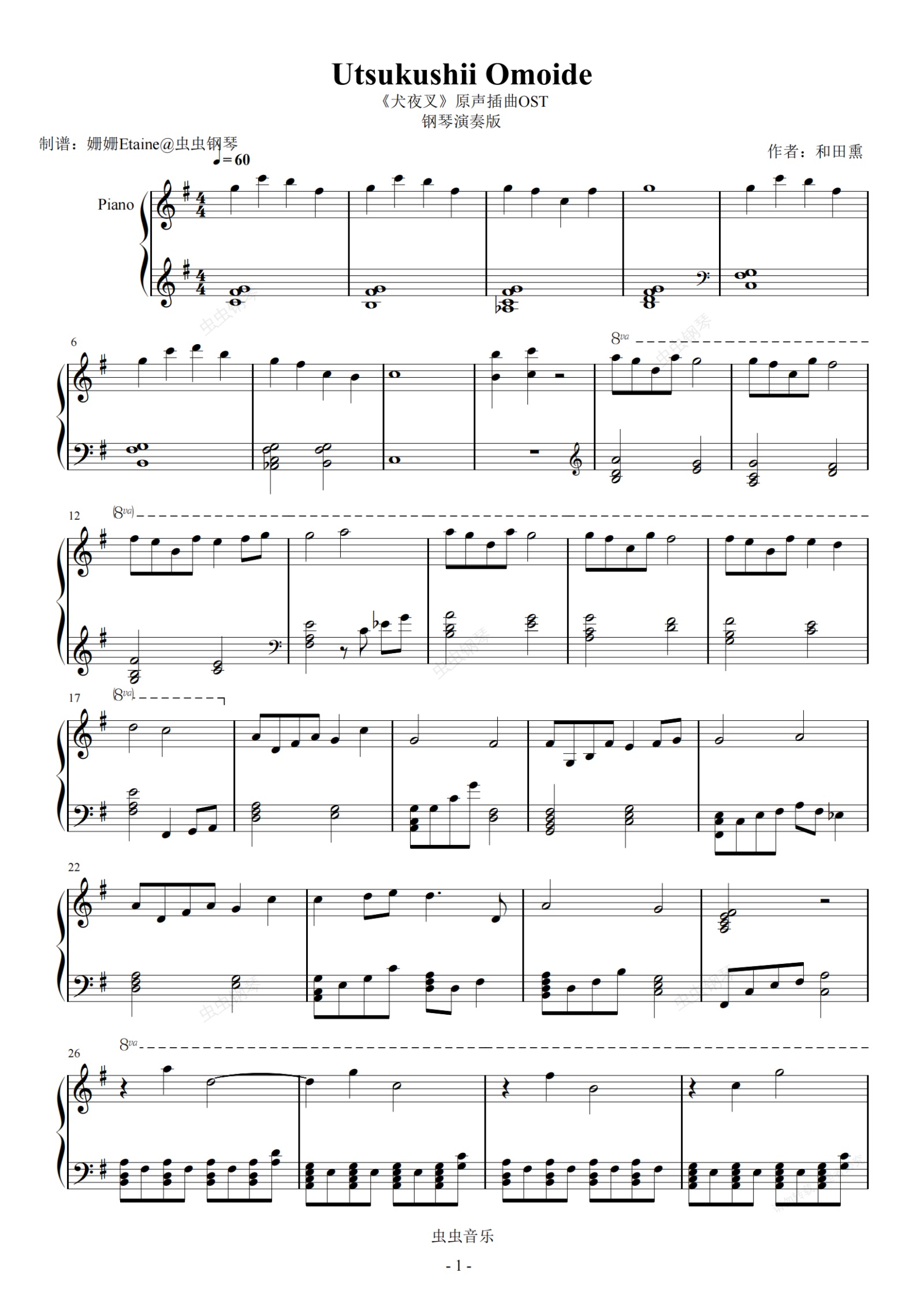 钢琴谱:Utsukushii Omoide 《犬夜叉》原声插曲OST 钢琴演奏版