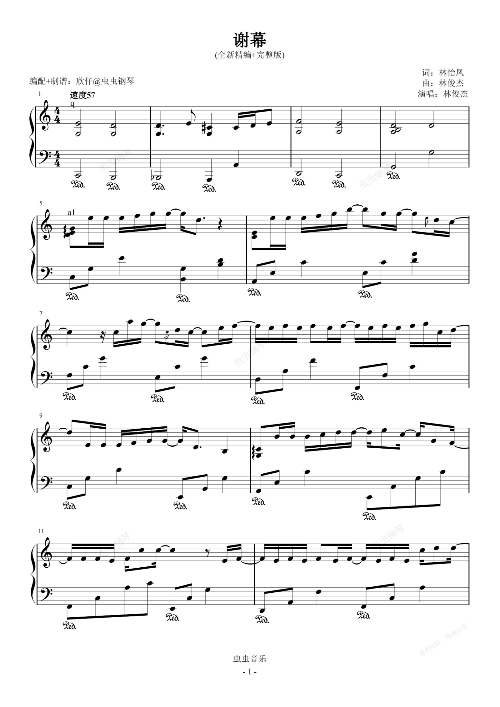 钢琴谱:林俊杰-C《谢幕》(全新精编+完整版)