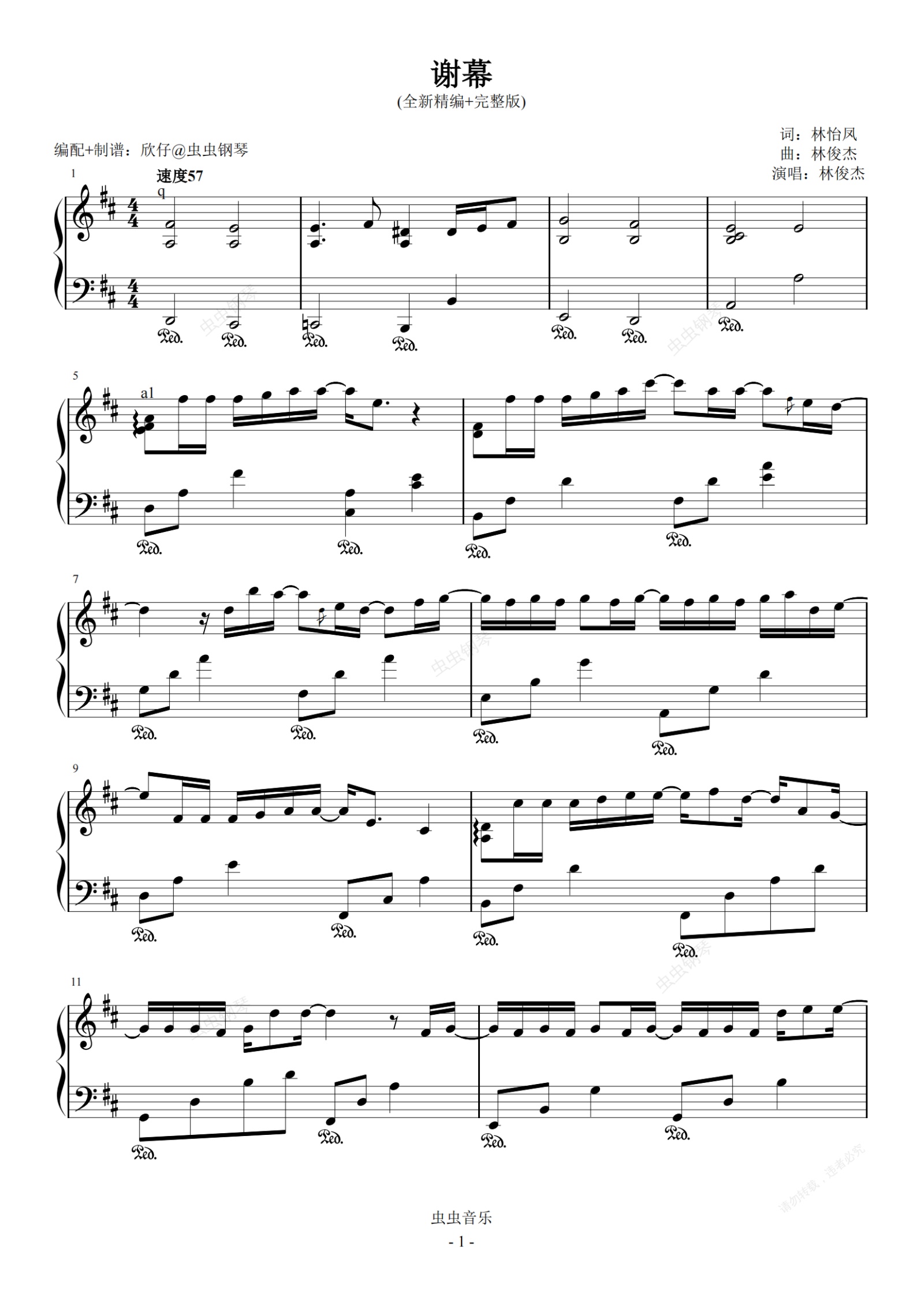 钢琴谱:林俊杰-D《谢幕》(全新精编+完整版)