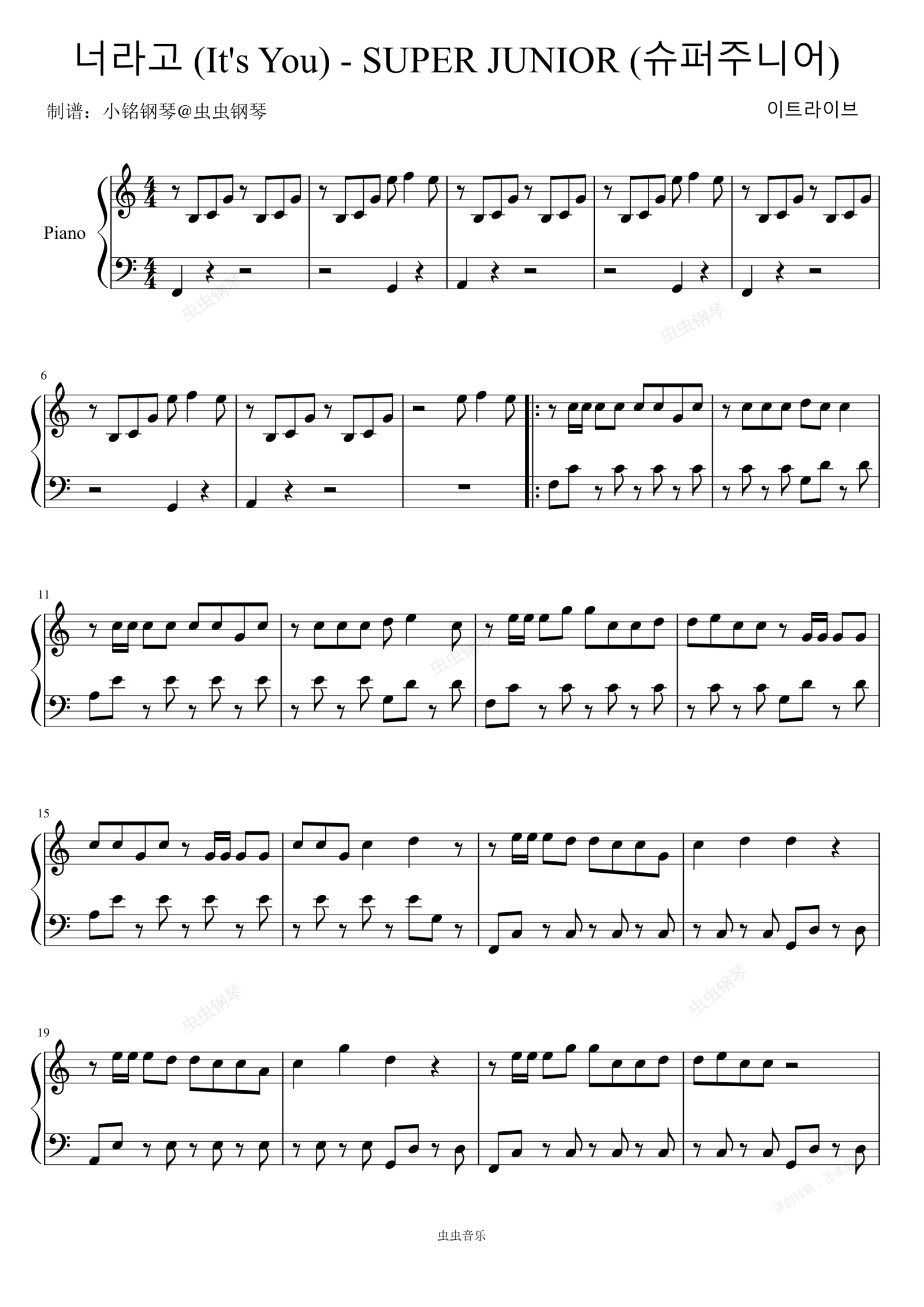 钢琴谱:너라고 (It's You) - SUPER JUNIOR (슈퍼주니어)