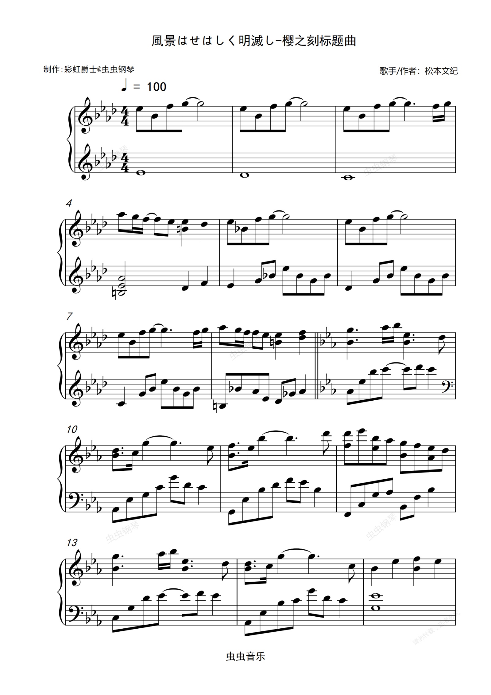 钢琴谱:風景はせはしく明滅し-樱之刻标题曲