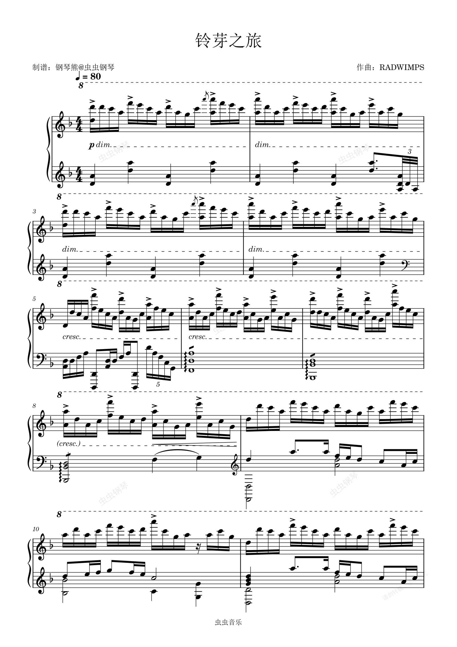 钢琴谱:铃芽之旅 pv 主题曲 极限超还原版!!!喜欢的兄弟记得点收藏关注哦~~~♥♥♥