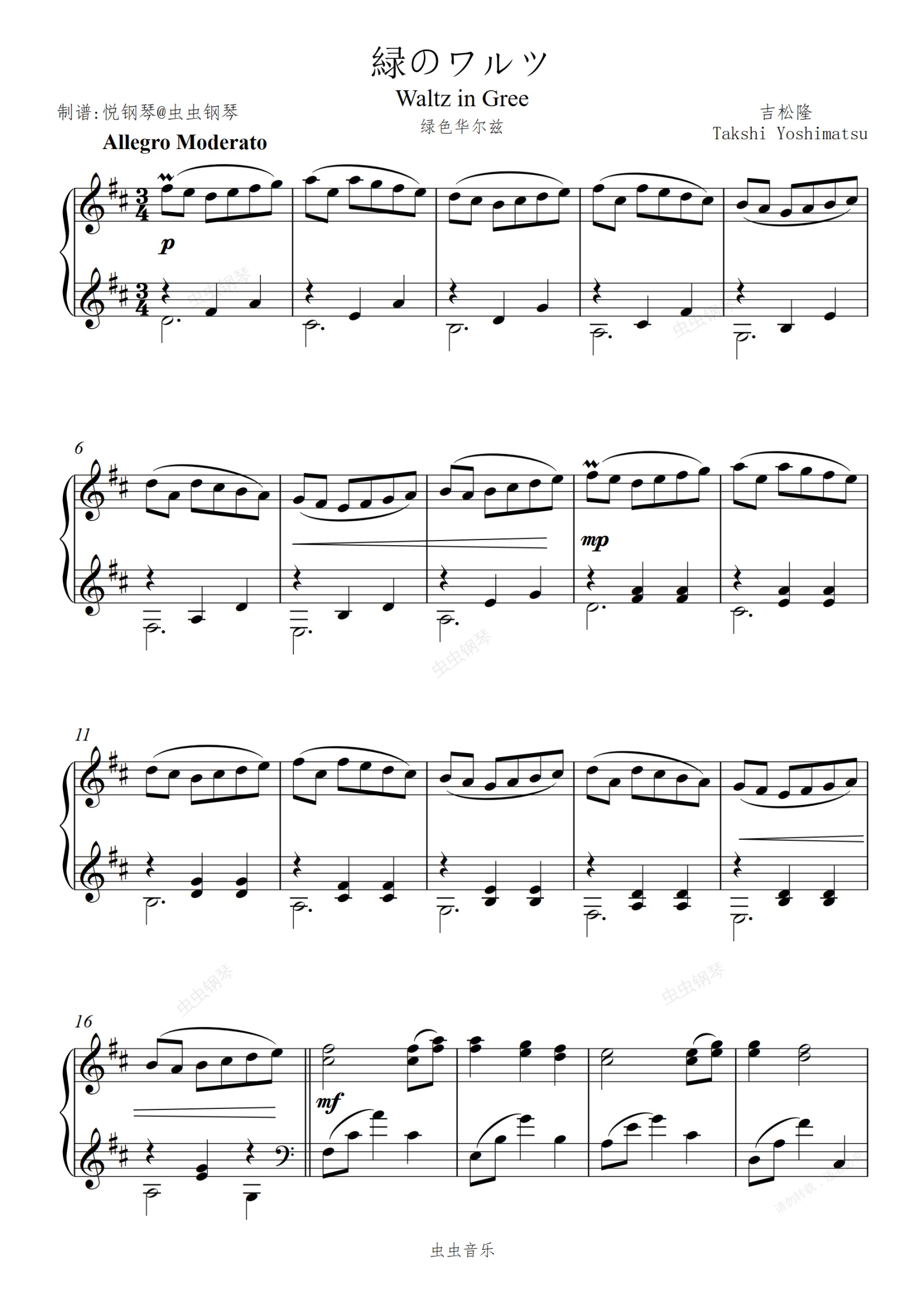 钢琴谱:绿色华尔兹//緑のワルツ 【唯美-治愈你的不开心】
