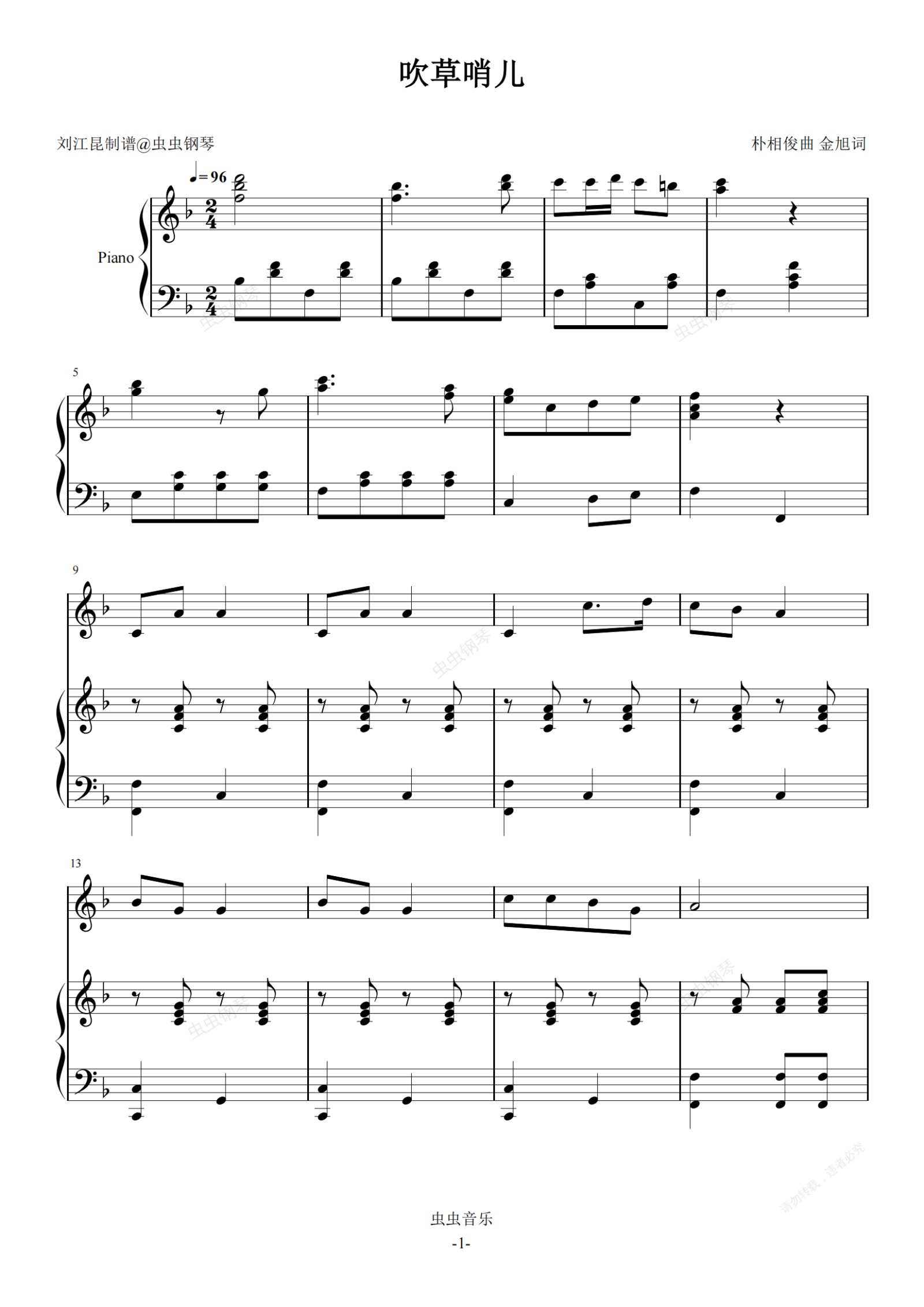 钢琴谱:吹草哨儿
