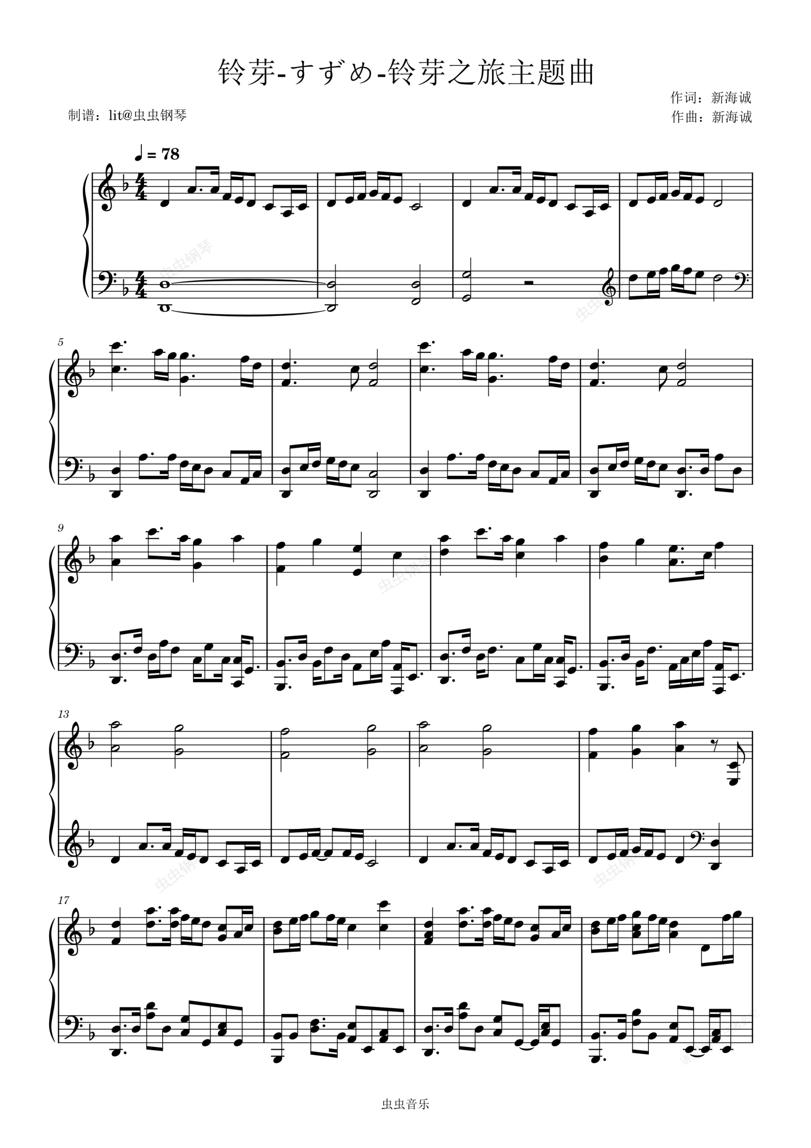 钢琴谱:铃芽-すずめ-铃芽之旅主题曲
