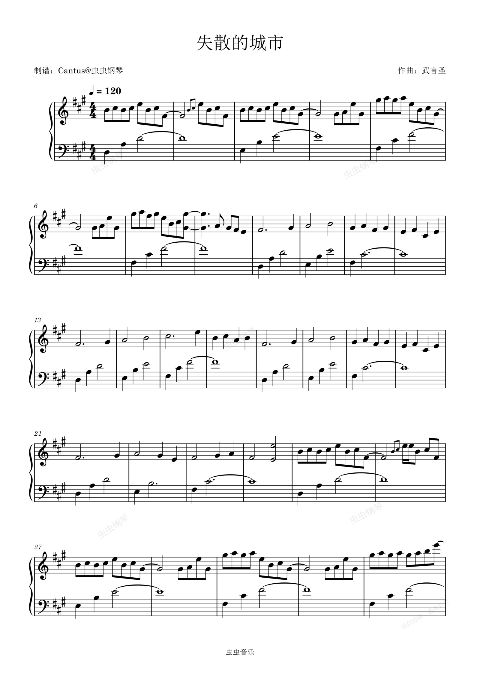 钢琴谱:失散的城市-武言圣