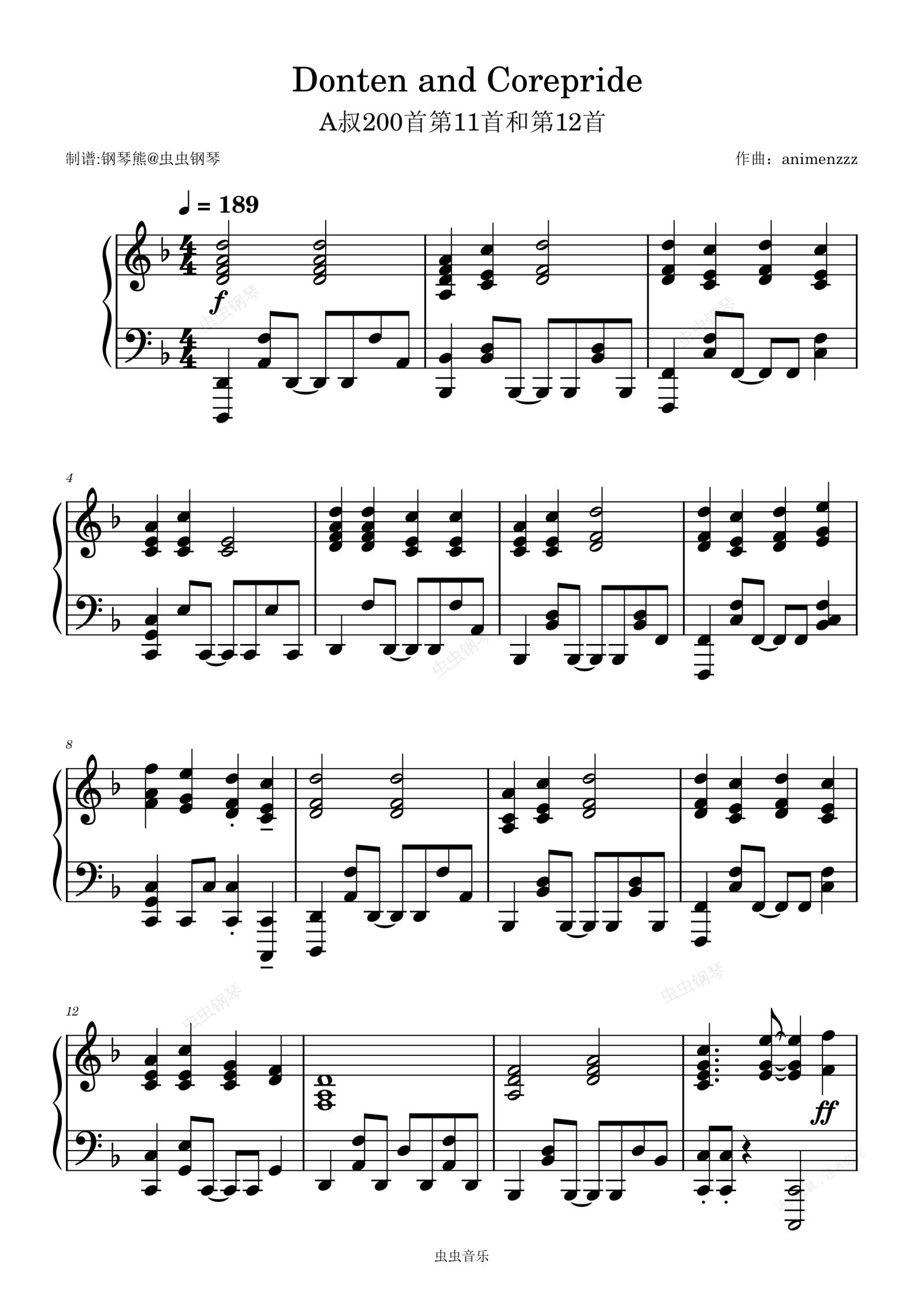 钢琴谱:A叔200首 银魂OP《阴天》 青之驱魔师《core pride》第11首和第12首