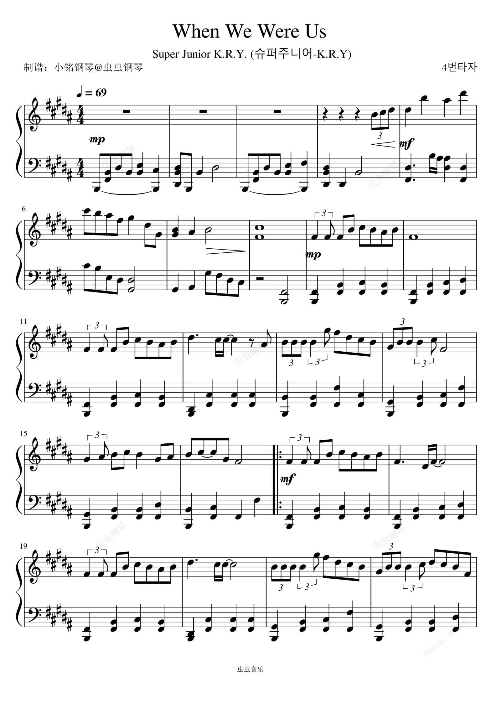 钢琴谱:我们的青涩季节 (When We Were Us) (푸르게 빛나던 우리의 계절) - Super Junior K.R.Y. (슈퍼주니어-K.R.Y)