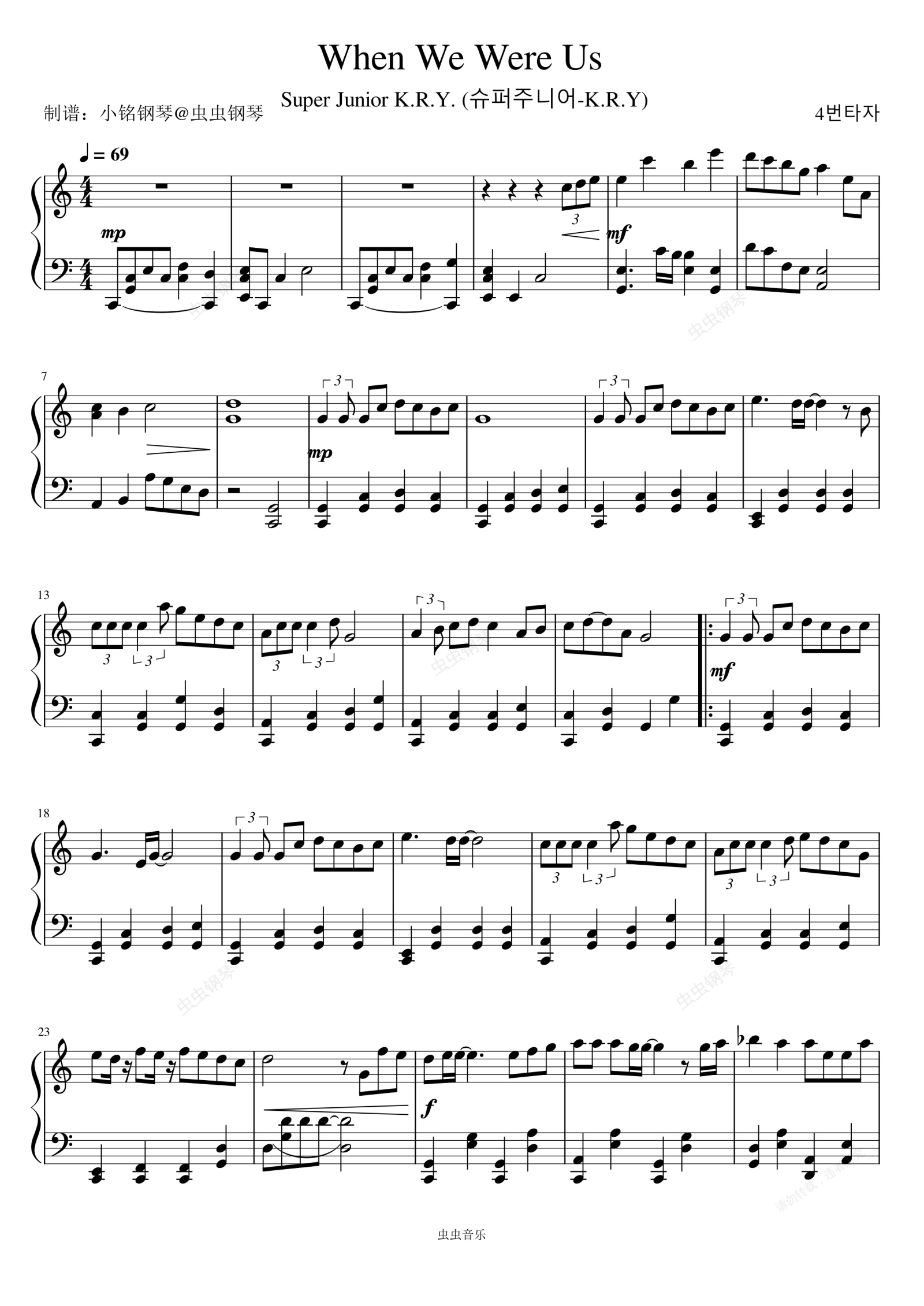 钢琴谱:我们的青涩季节 (When We Were Us) (푸르게 빛나던 우리의 계절) - Super Junior K.R.Y. (슈퍼주니어-K.R.Y)