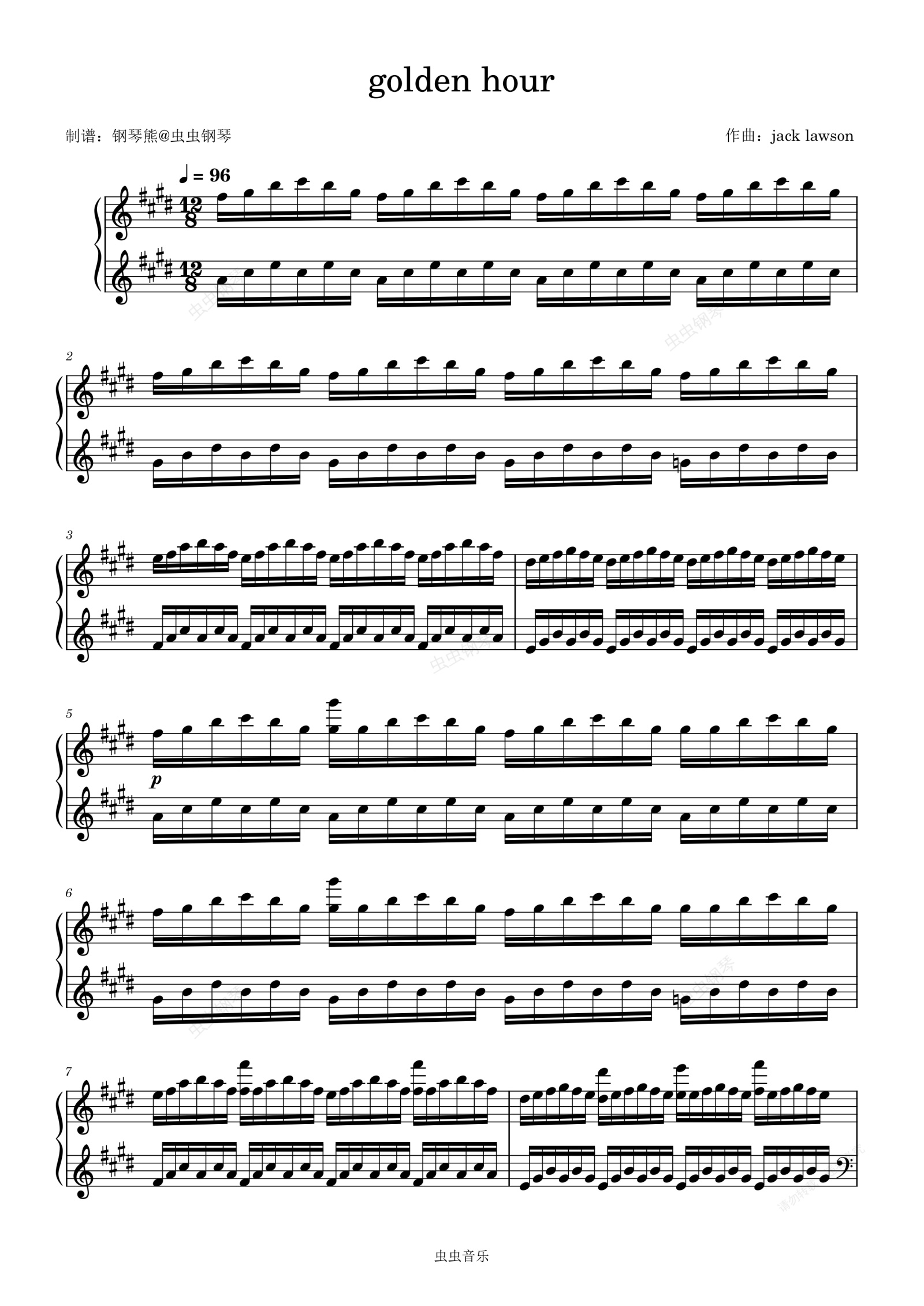 钢琴谱:golden hour 粉丝点歌成功~ 需要什么谱子可以给🐻点关注后留言~不定时抽取~喜欢的谱子记得点♥♥♥