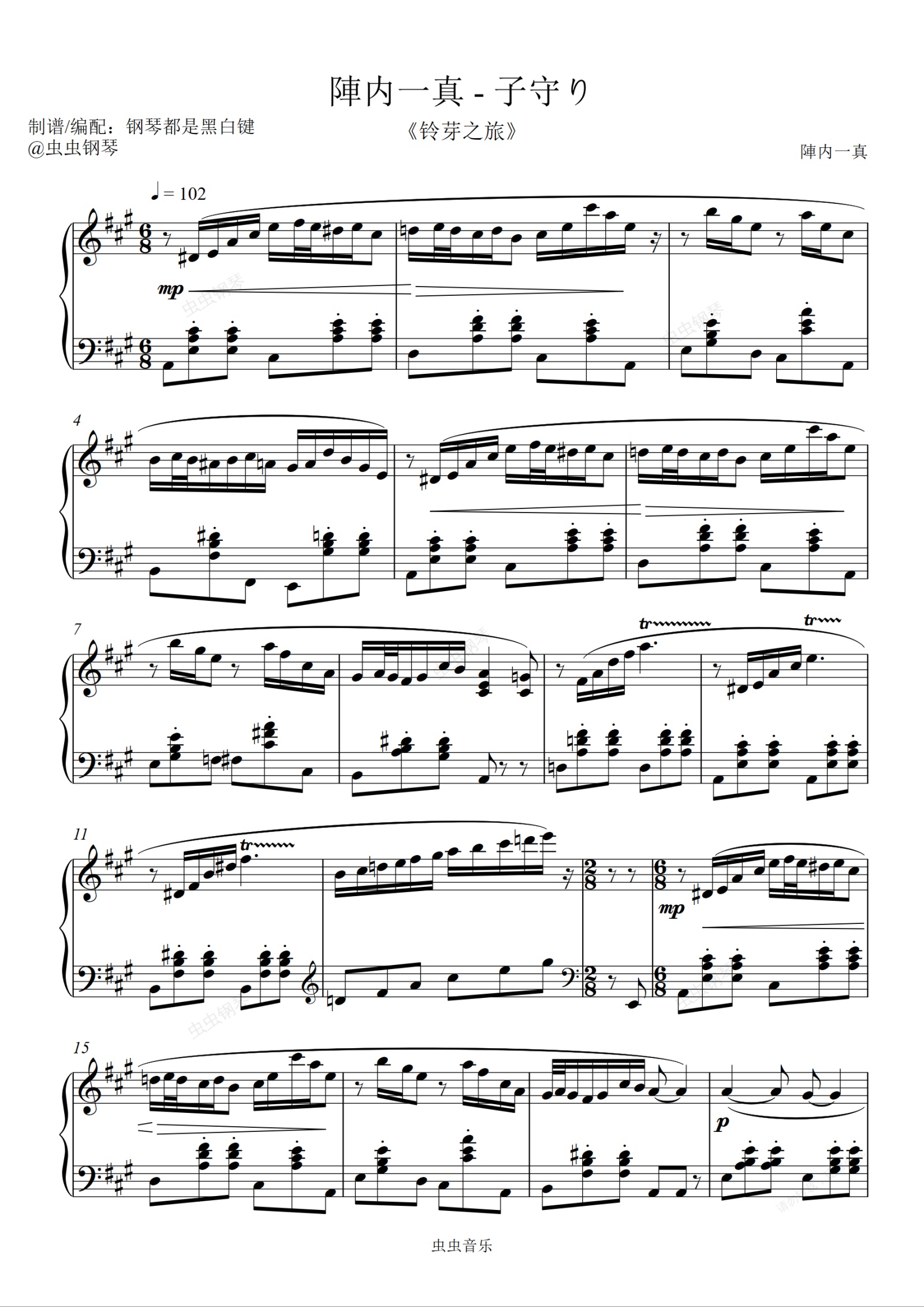 钢琴谱:《铃芽之旅》- 陣内一真 - 子守り [好听到爆钢琴独奏]