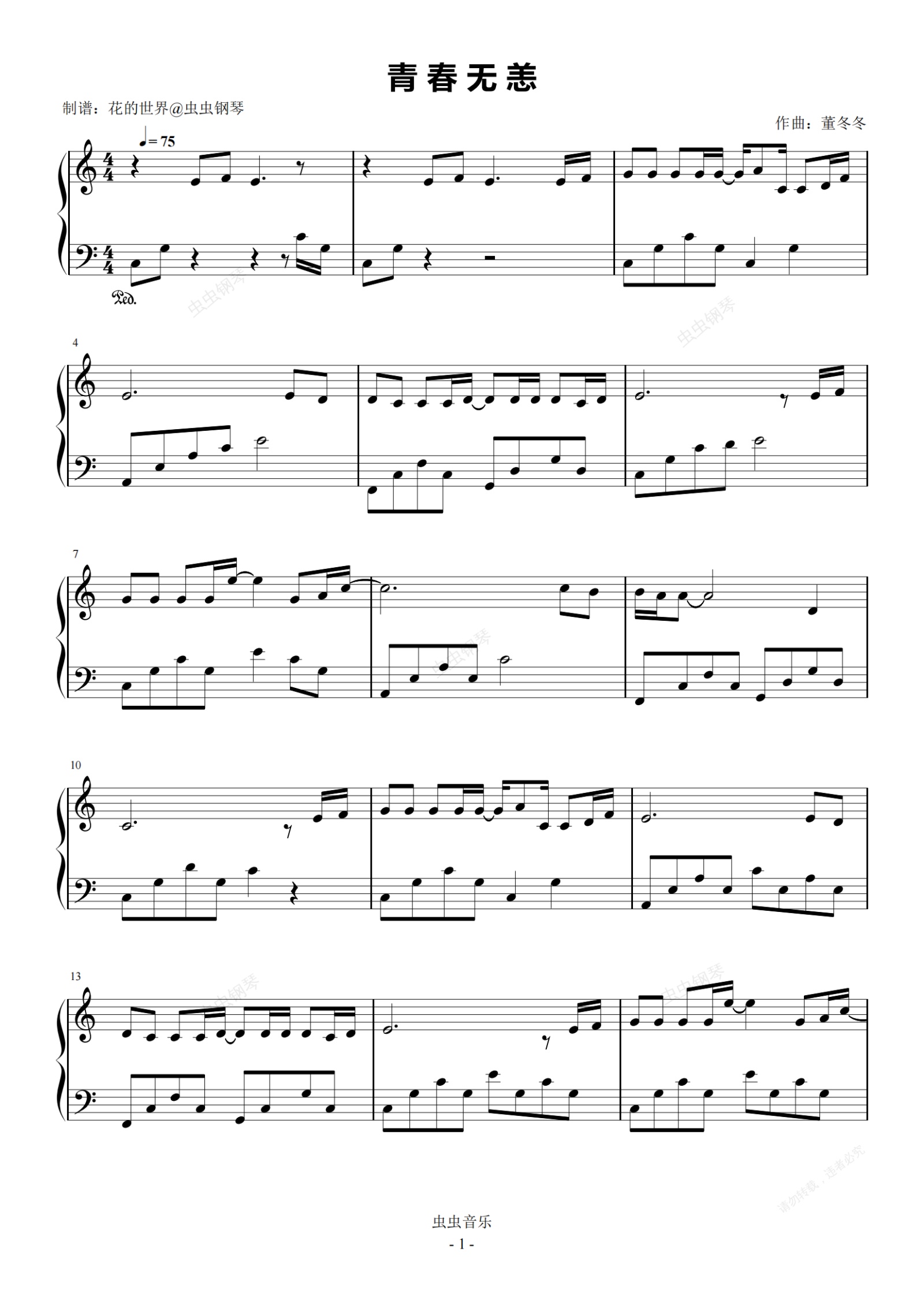 钢琴谱:青春无恙 C调简易版 张远 归路