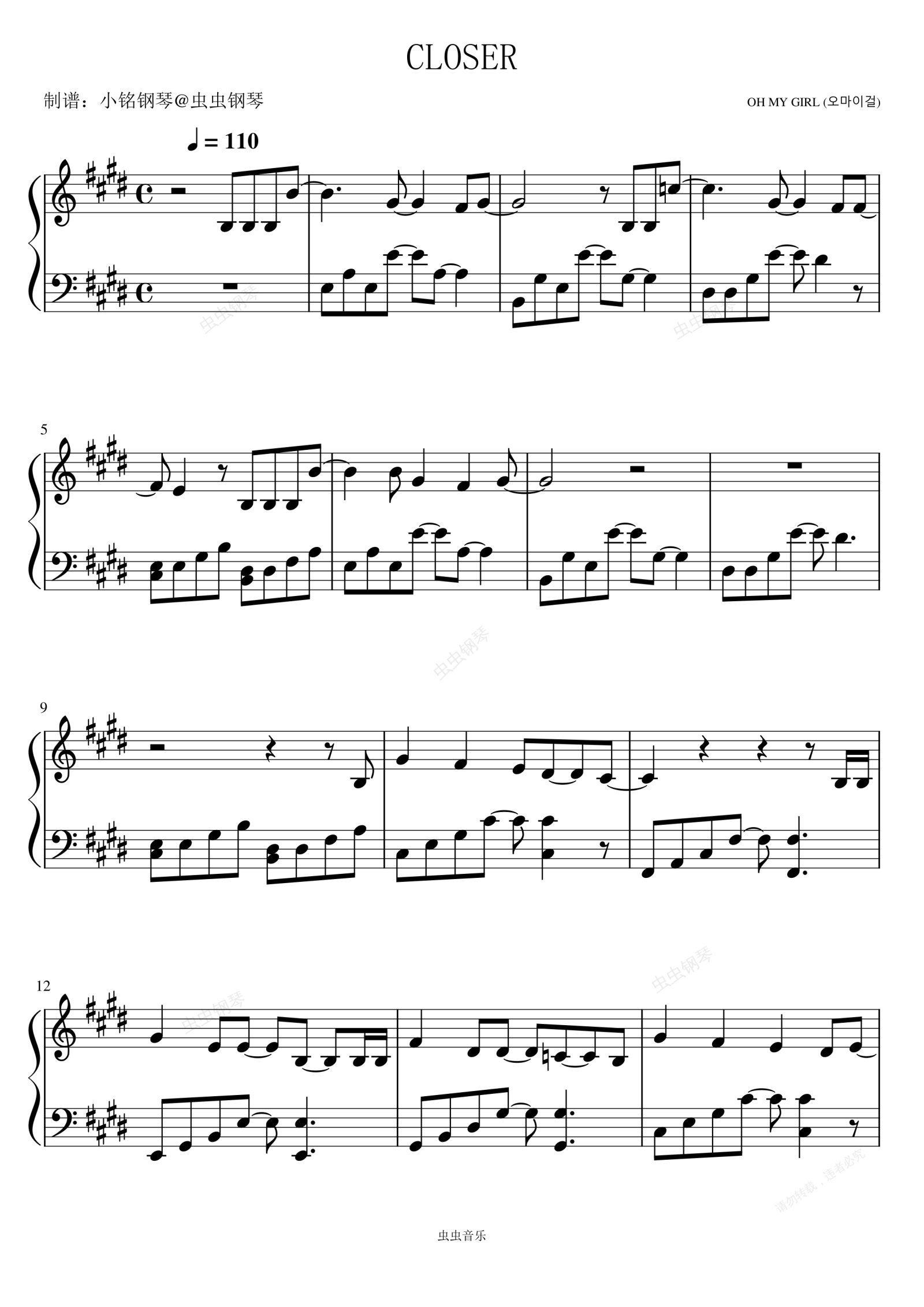 钢琴谱:CLOSER - OH MY GIRL (오마이걸)