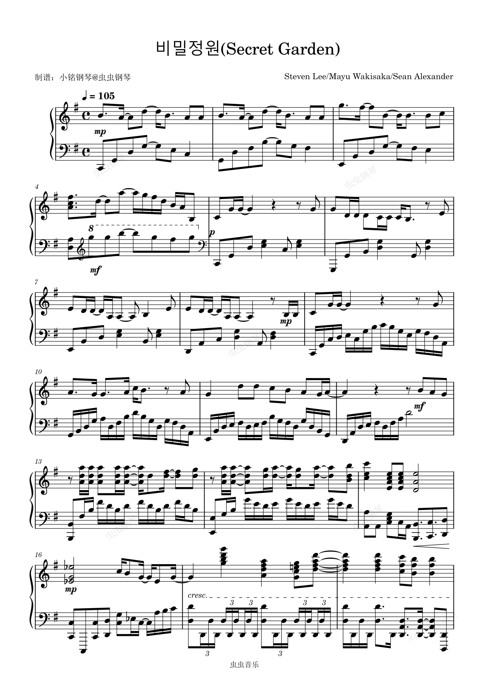 钢琴谱:비밀정원 (秘密花园) - OH MY GIRL (오마이걸)