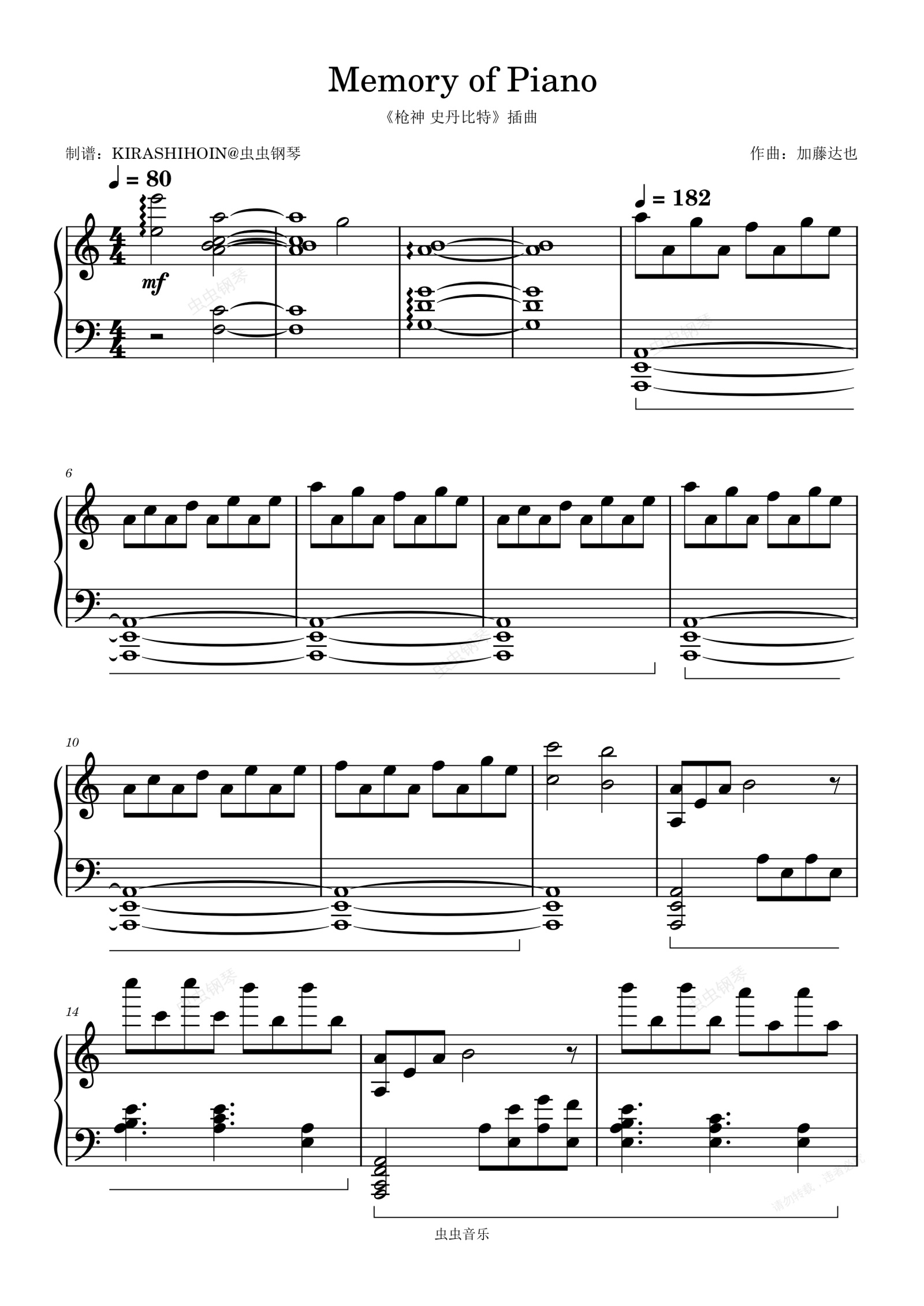 钢琴谱:Memory of Piano(《枪神 史丹比特》插曲)- 加藤达也
