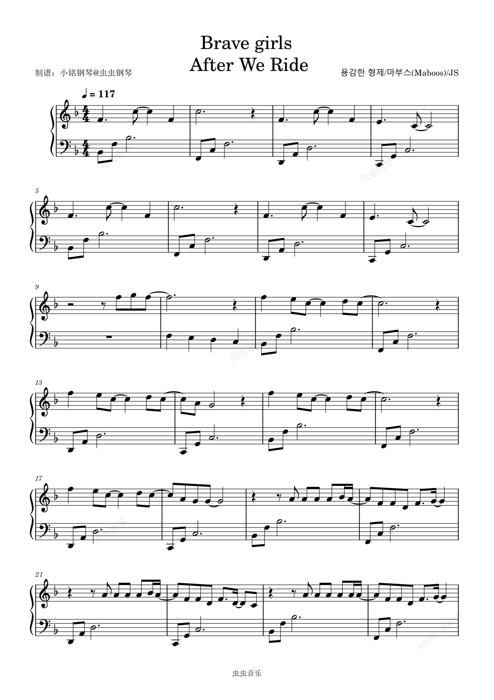 钢琴谱:술버릇 (운전만해 그후) - Brave Girls