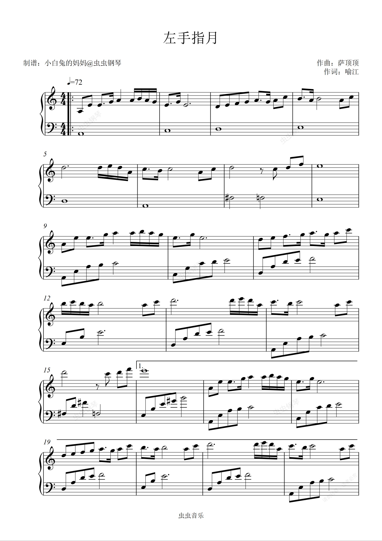 钢琴谱:《左手指月》初学者版本