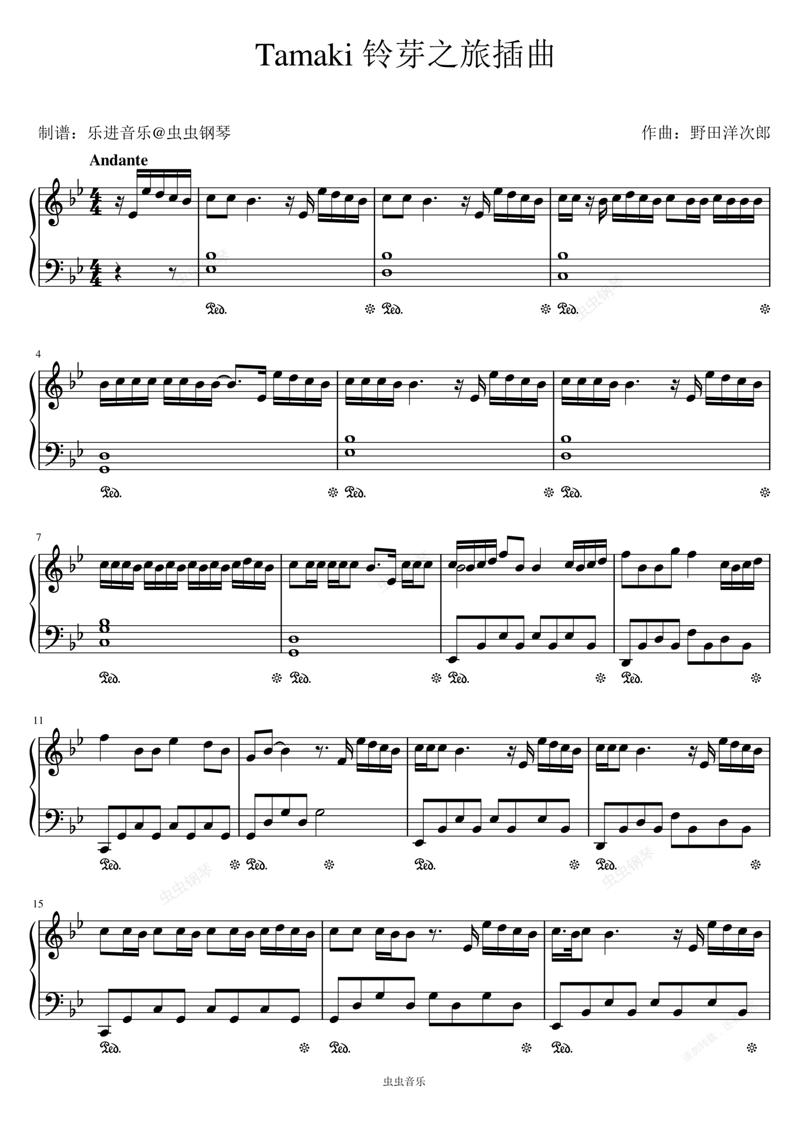 钢琴谱:铃芽之旅插曲《tamaki》