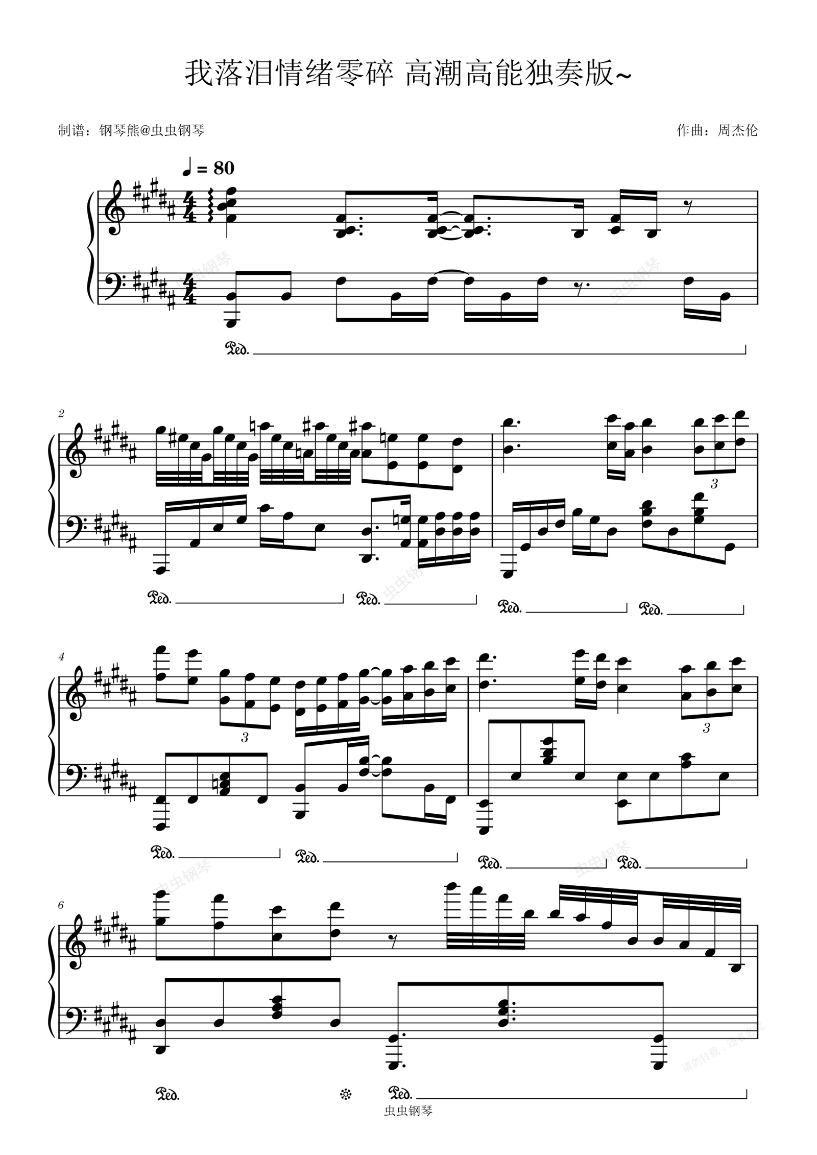 钢琴谱:《我落泪情绪零碎》高潮 高能部分~周杰伦华丽高燃原版