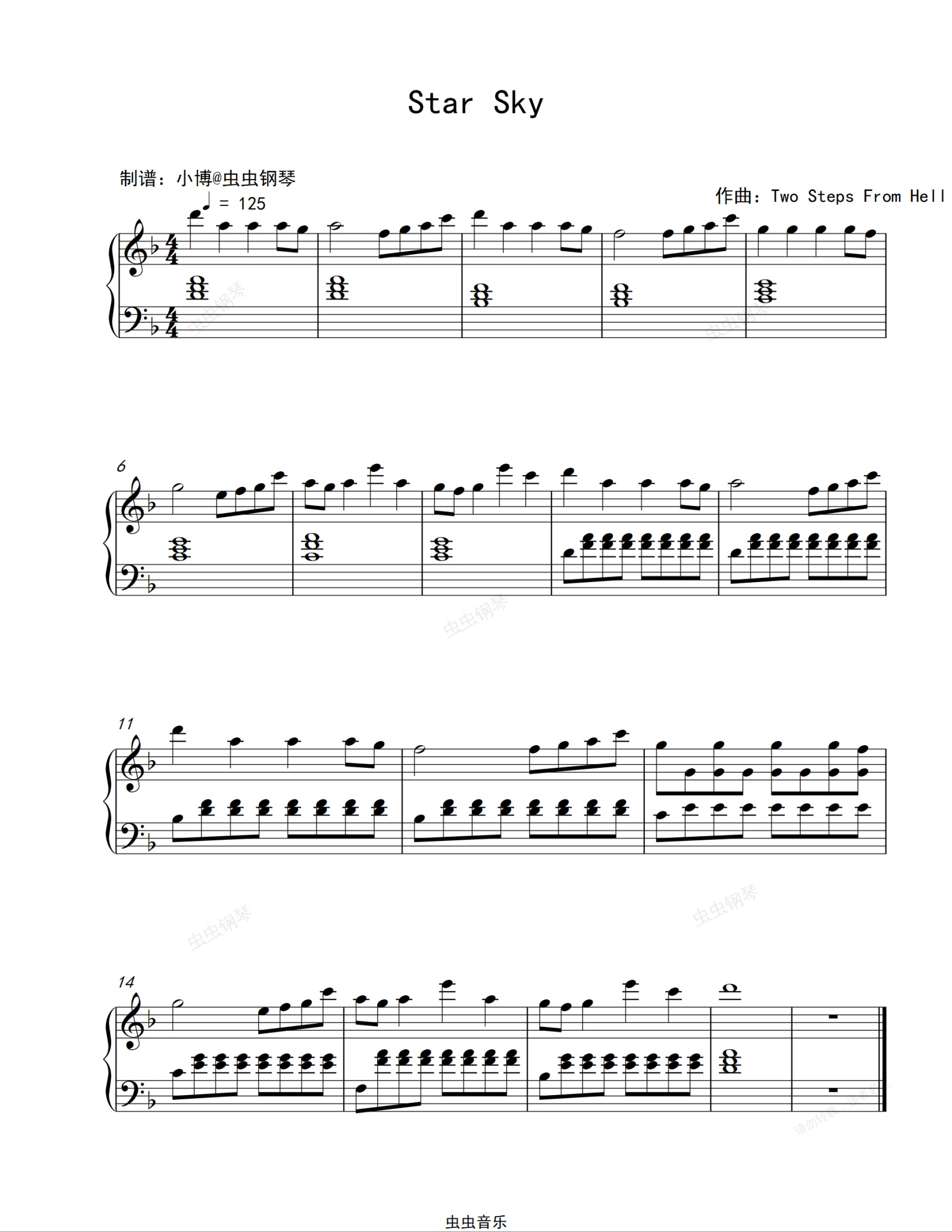 钢琴谱:Star Sky-原神风物之诗琴谱-原琴谱-Two Steps From Hell
