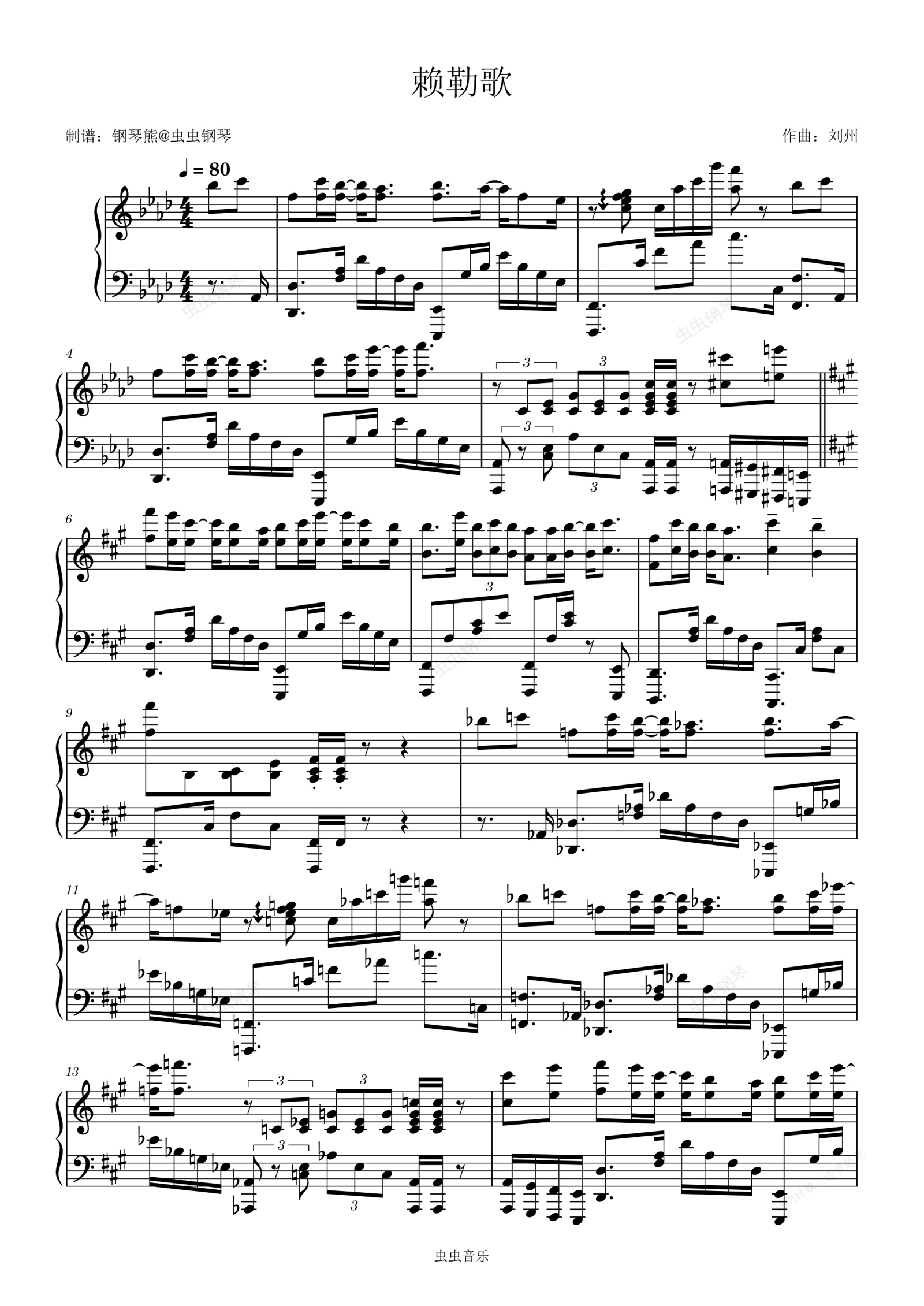 钢琴谱:赖勒歌 高能华丽版~喜欢的兄弟记得点收藏哦~