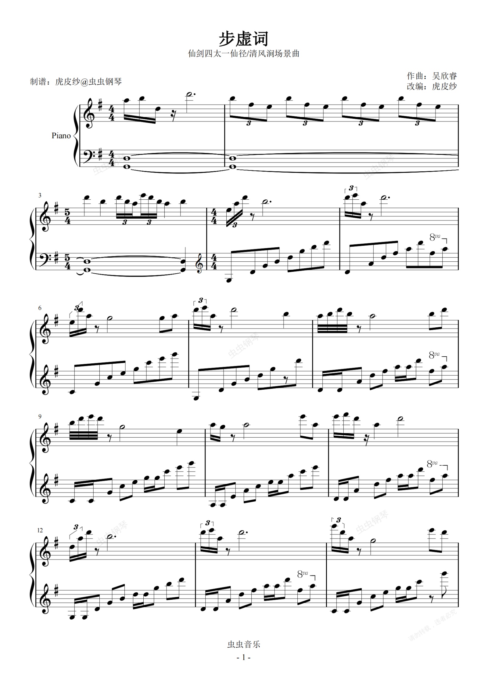 钢琴谱:仙剑四 步虚词 太一仙径/清风涧场景曲