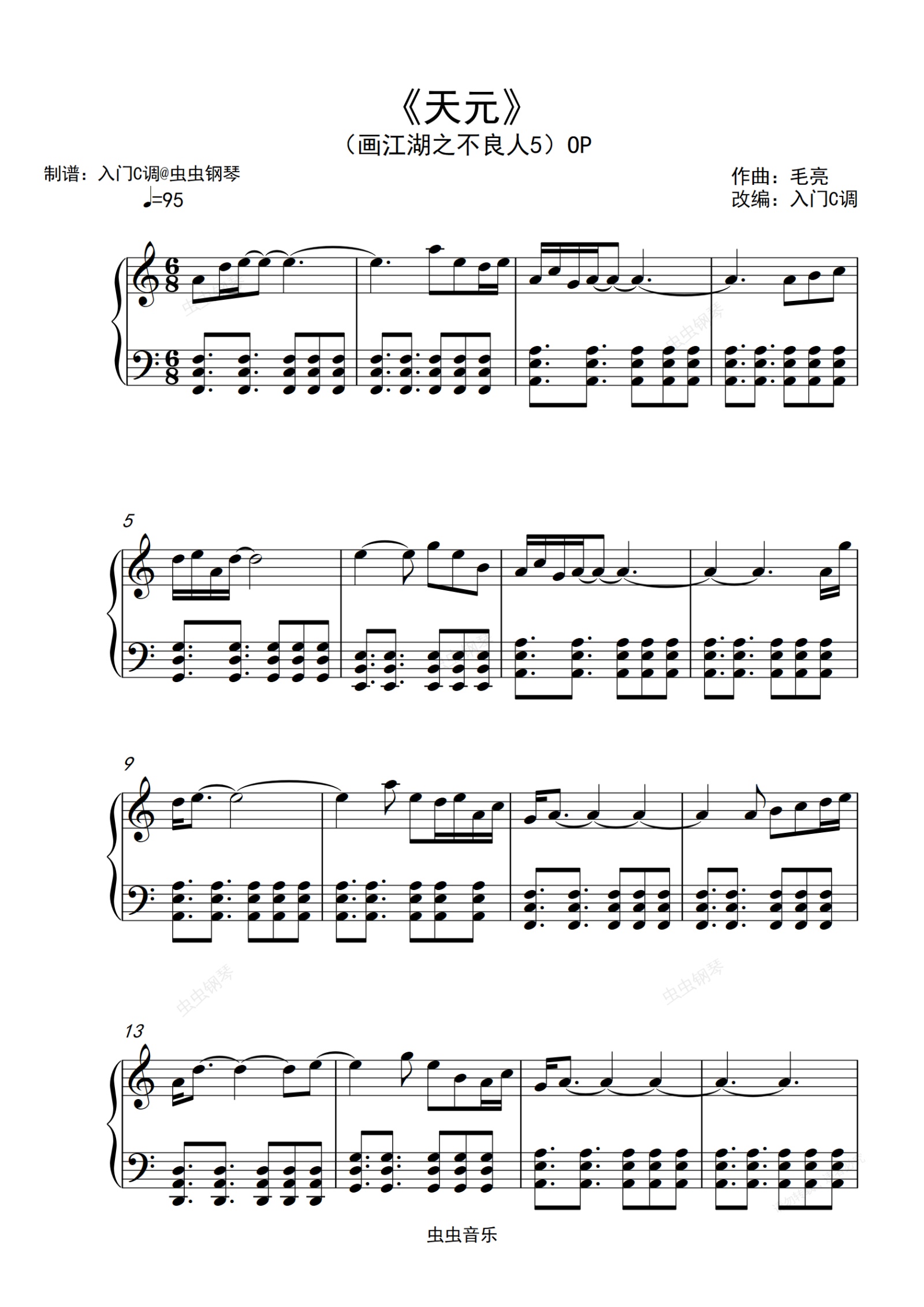 钢琴谱:画江湖之不良人5 OP《天元》入门C调版