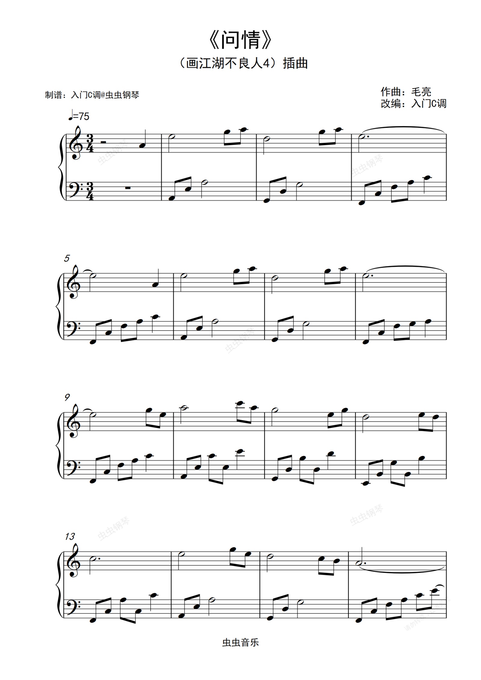 钢琴谱:画江湖不良人4插曲《问情》入门C调版