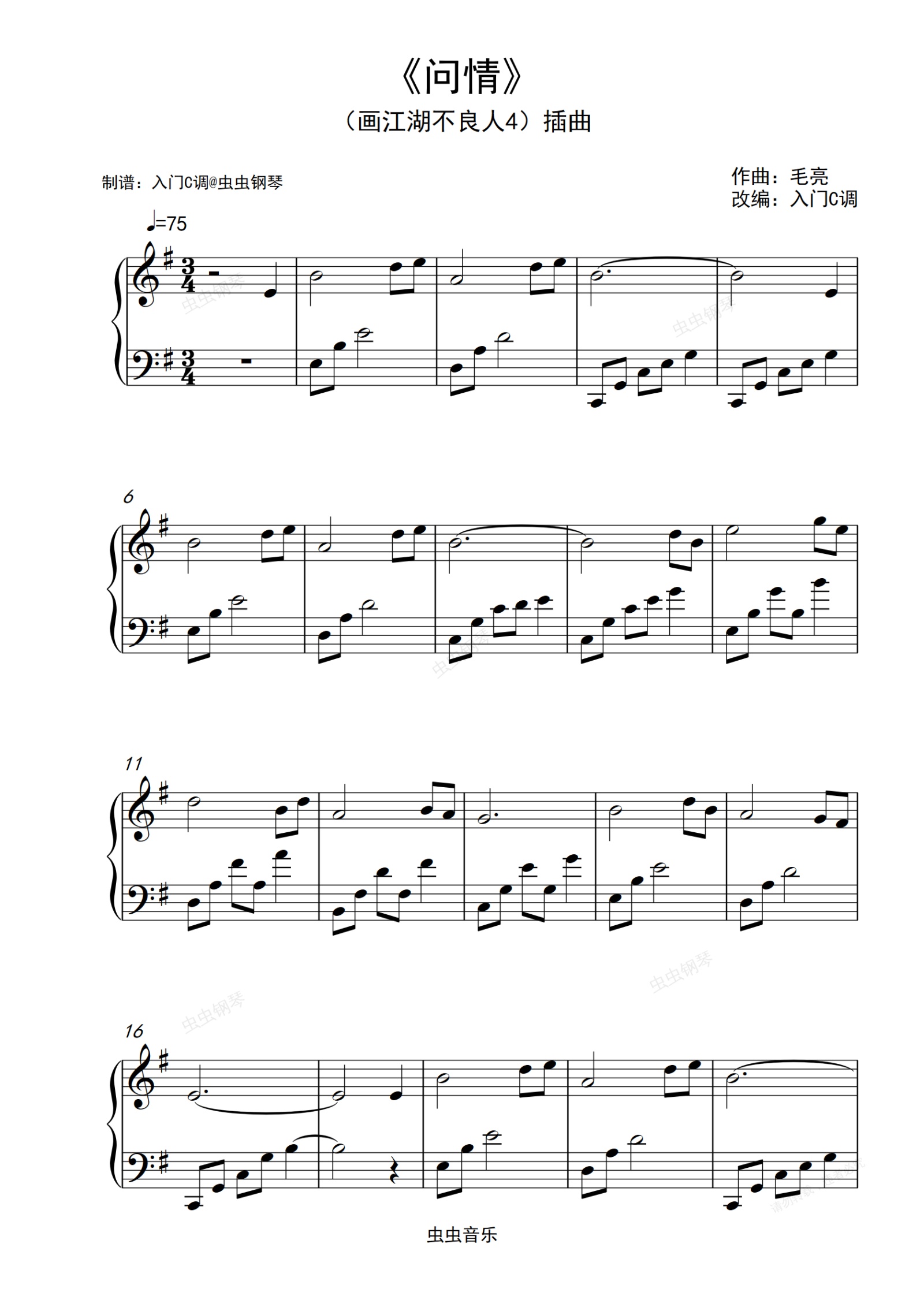 钢琴谱:画江湖不良人4插曲《问情》G调简单版