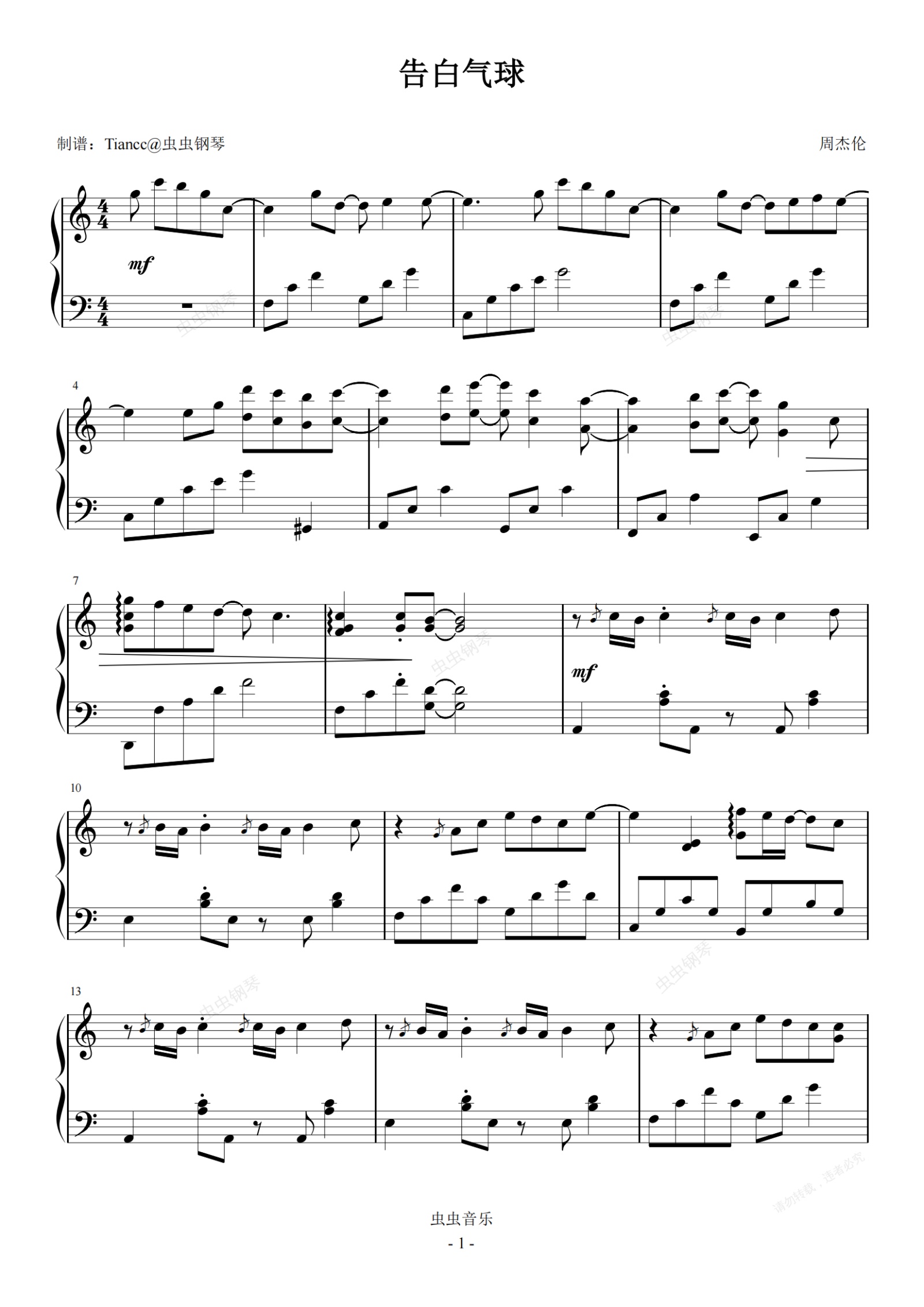 钢琴谱:《告白气球》C调,爱情真的有这么甜吗?